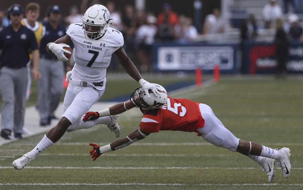 The Hokies (2-1) led 28-21 after a 72-yard touchdown pass from Josh Jackson to Damon Hazelton with 32 seconds left in the third quarter, but ODU scored on its next two possessions, taking a 35-28 lead on a 15-yard touchdown run by Cox with 9:57 to go – the Monarchs first lead of the game.