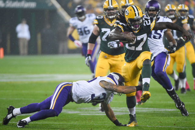 Packers running back Eddie Lacy, the reigning Rookie of the Year, entered the night with 161 rushing yards and one touchdown this season. He rushed for 105 yards and two touchdowns before watching the fourth quarter from the sideline.