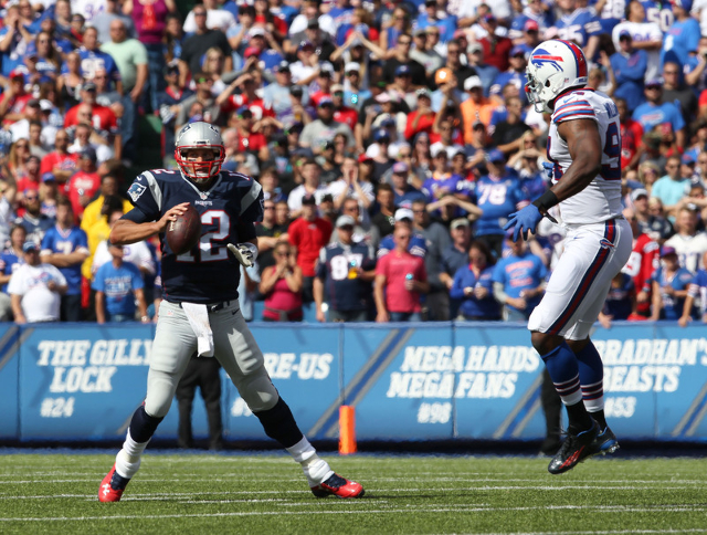 Patriots quarterback Tom Brady threw for 466 yards and three touchdowns in the first meeting to improve to 24-3 vs. Buffalo in his career, but New England has since lost two key offensive weapons in running back Dion Lewis and receiver Julian Edelman.