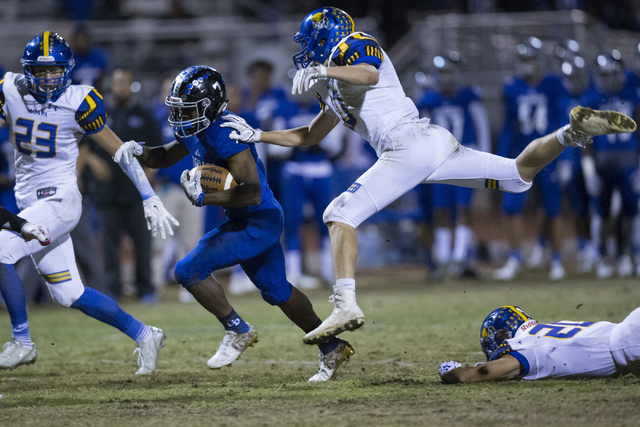 Legacy (7-2) at Sierra Vista (8-1) — If the Mountain Lions stop Samuel Turner, they have a chance of winning. Legacy’s senior running back leads Southern Nevada with 1,782 rushing yards and is a big reason why the Longhorns have come as far as they have. The passing game has yielded more interceptions than touchdowns for them, and no Legacy wide receiver has more than two touchdown receptions, so the ground game is nearly the entire offense. But Sierra Vista’s ground game is not too shabby in its own right. Brian LaGrange has 10 touchdowns, Lopaka Kolone has five and a trio of rushers have at least 300 yards. It will be a battle of running backs, and the winner will take on the Arbor View-Spring Valley winner in the Sunset Region semifinals.