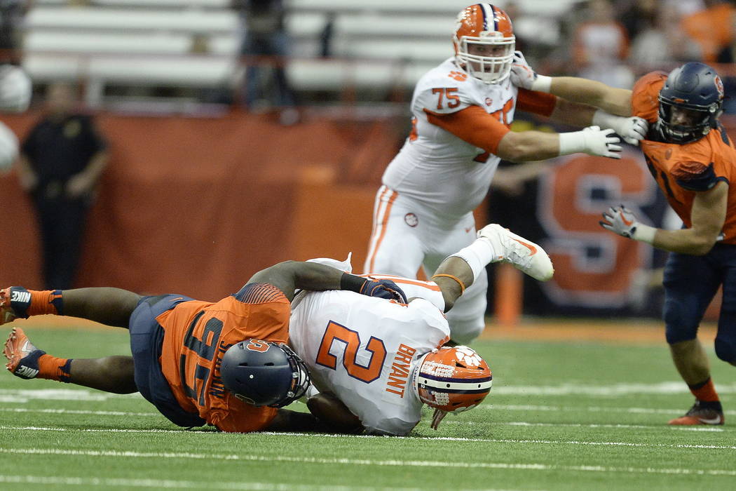 The Orange defense took a page out of Clemson’s playbook. The Tigers were among just three teams in the nation averaging at least 230 yards rushing and 230 yards passing (Ohio State and Oregon are the others). The Tigers managed just 39 yards rushing in the first half and 113 total.