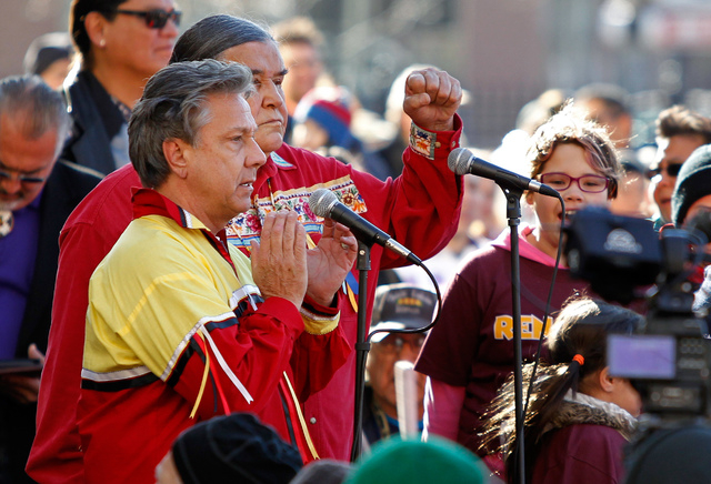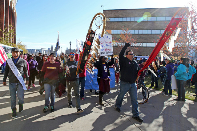 The event began with a march through the University of Minnesota campus to TCF Bank Stadium, where Native American leaders, local politicians, former sports stars and other speakers voiced their disdain for Redskins owner Dan Snyder and his refusal to change the nickname they’ve derided as derogatory and racist.