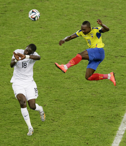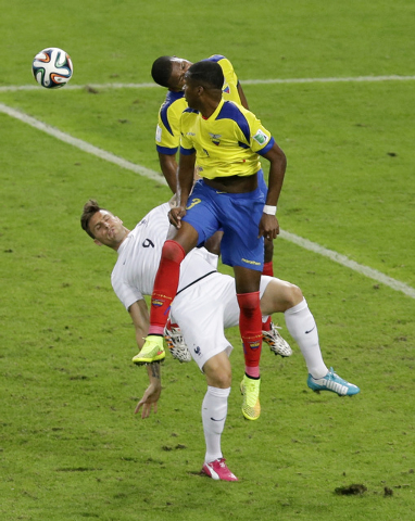 But Ecuador may feel upset that France center half Mamadou Sakho was not shown a red card in the eighth minute when he appeared to elbow Oswaldo Minda in the face during a France corner. Then, in a late incident off the ball, France forward Olivier Giroud jabbed his elbow in to Gabriel Achilier, who was standing behind him.