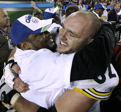 The Steelers lead 10-7, but after Roethlisberger throws an interception, Warner drives the Cardinals to first-and-goal at the 1. (Will Warner have a brain cramp on the goal line? Bet on it.)