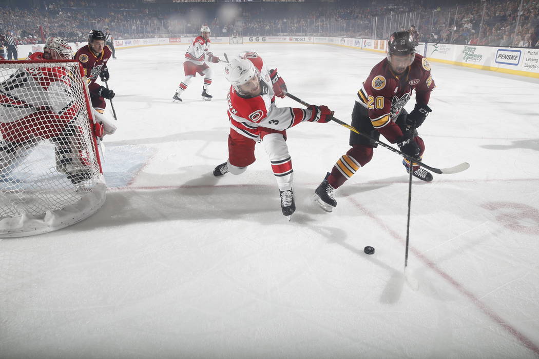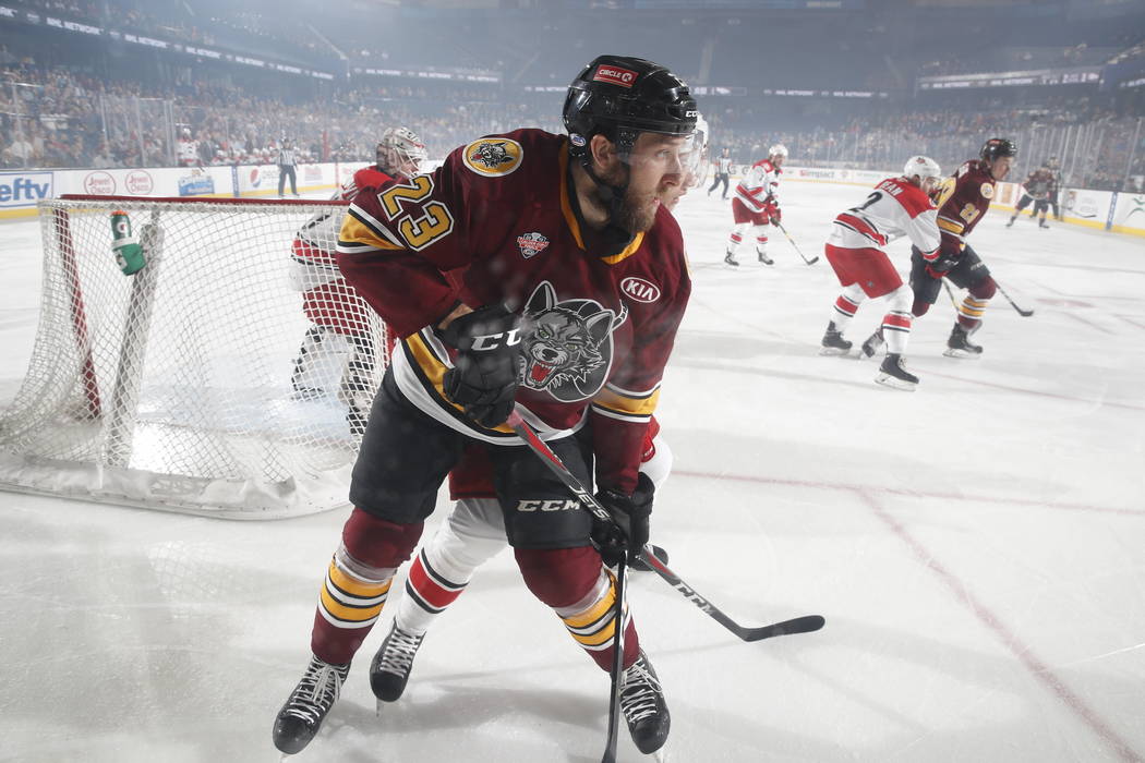 The Wolves were without forward Curtis McKenzie, who was suspended by the AHL for one game. McKenzie, who has 14 points in the postseason (8 goals, 6 assists), drew a game misconduct and was cited as the aggressor in the final moments of Chicago’s 5-3 loss in Game 2.