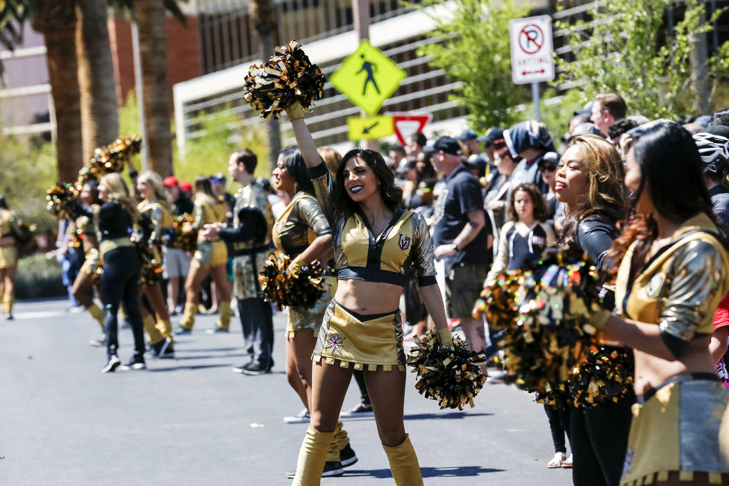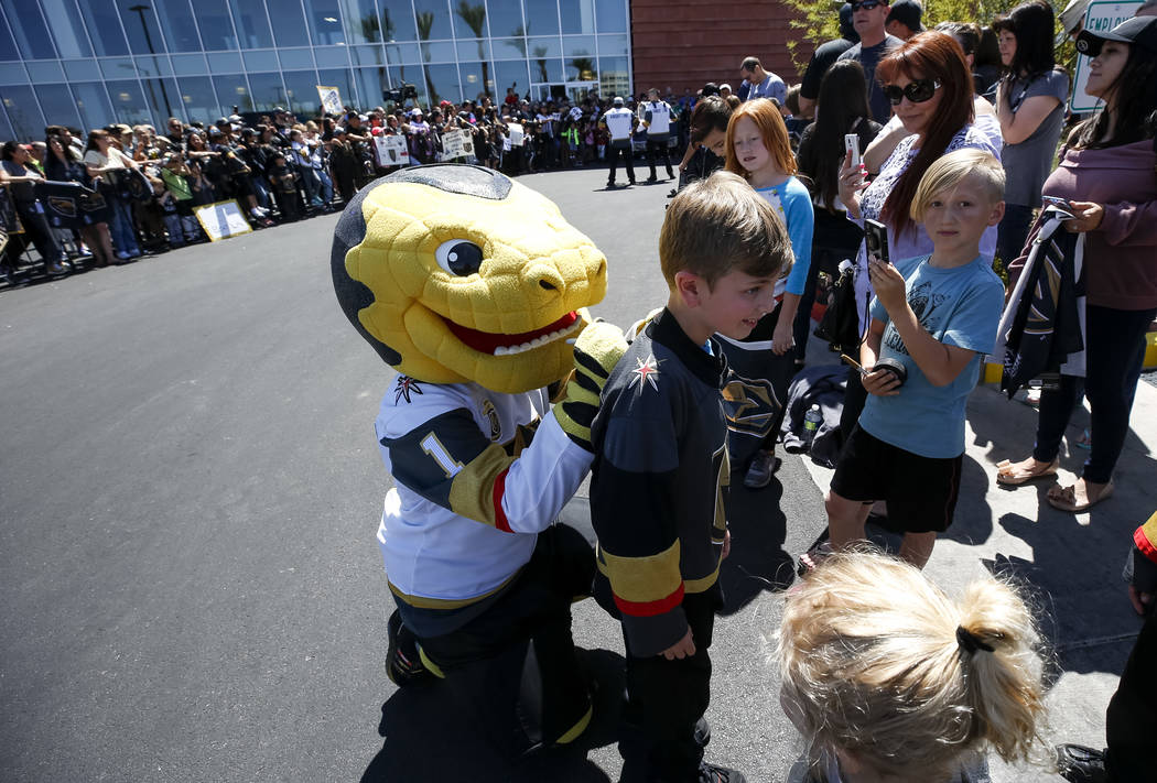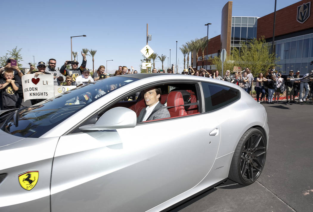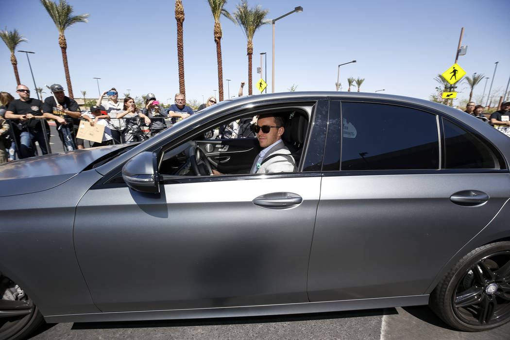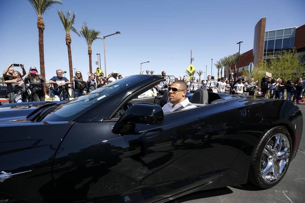 Fans chanted “Go Knights, go” and “Beat LA” as the players whose jerseys many of them wore — Deryk Engelland, Reilly Smith and David Perron, to name a few — drove past and waved. Team owner Bill Foley, wearing a black Golden Knights tee, sunglasses and khakis, estimated there were between 1,500 and 1,600 people in attendance.