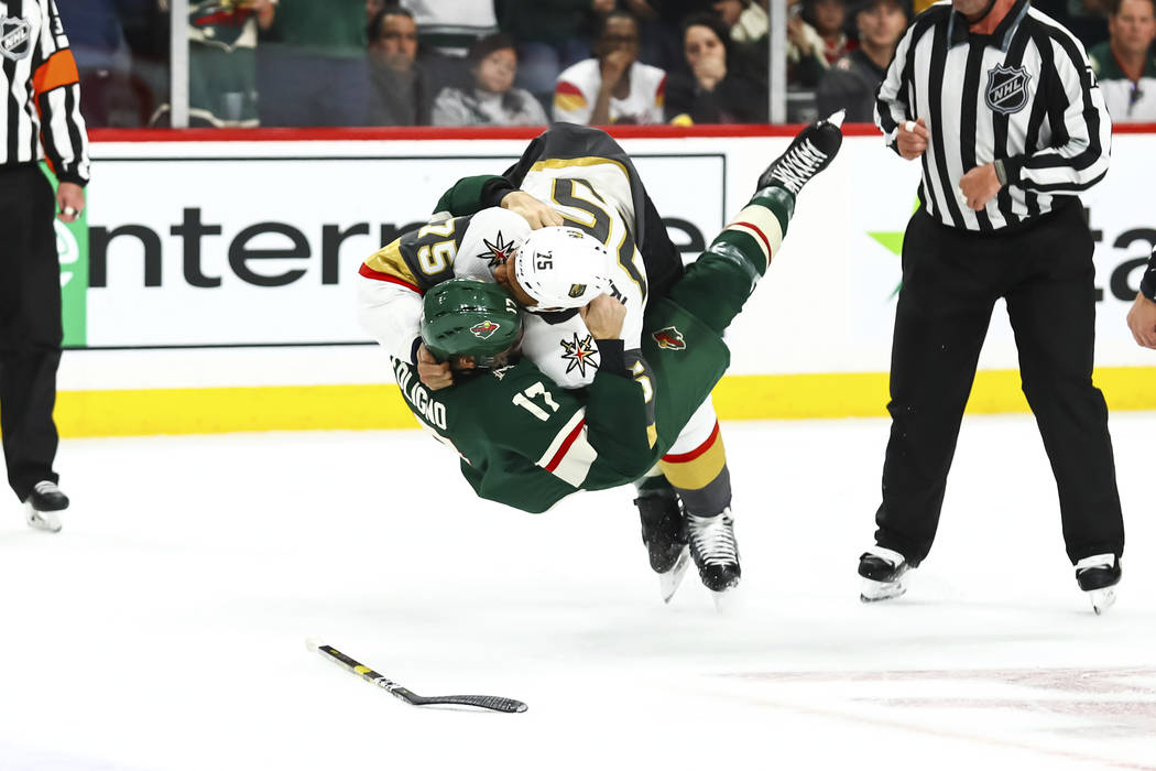 “I’m totally into (the fighting),” said Knights defenseman Nate Schmidt, who has been involved in two fights in his NHL career. “It’s awesome. There’s a place for it in the game. I think it’s a good way to self-regulate. I think it’s necessary because guys have to answer for it if they do something stupid. If they didn’t have it, the guys would get away with way too much. You could take liberties against the other team’s top guys and just get a two-minute penalty, and the only recourse would be to whack someone and get another penalty of your own.”