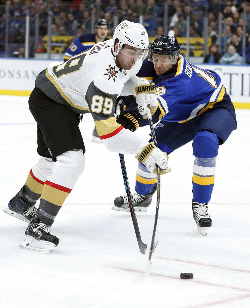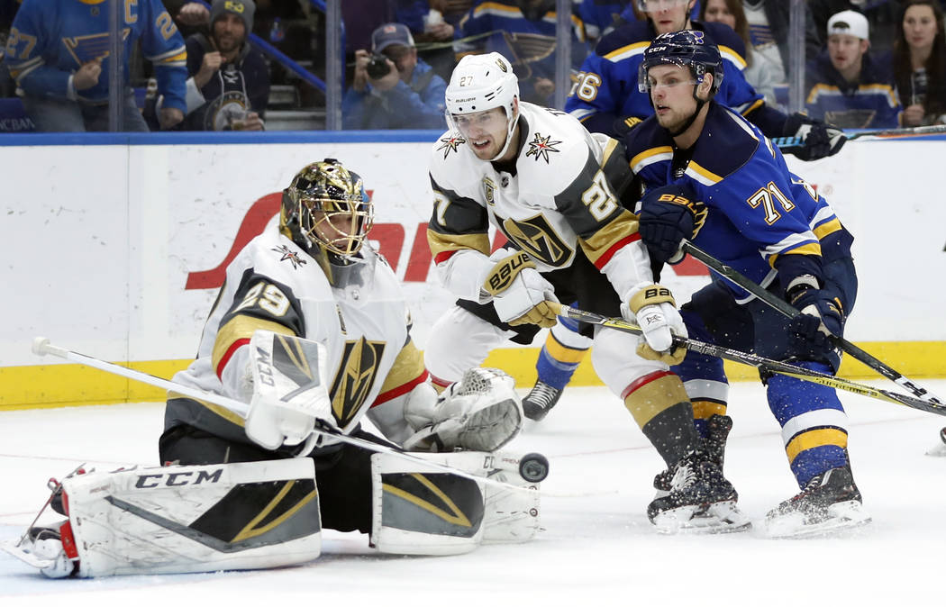 On the game-winner, Stastny was alone at the left post after Marc-Andre Fleury had stopped Colton Parayko’s shot from the right faceoff circle and got a piece of Vladimir Sobotka’s rebound attempt. But the puck was sitting at the post on the goal line, and Stastny nudged it over the line before Fleury could react.
