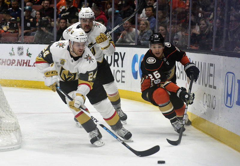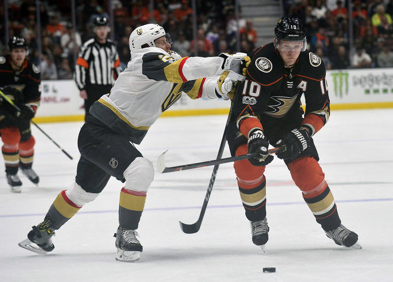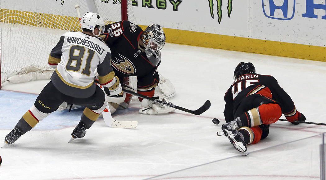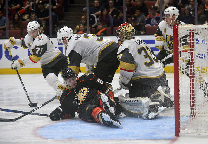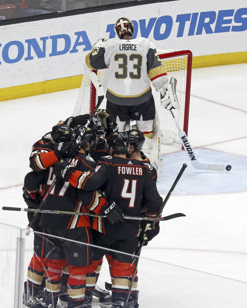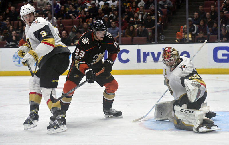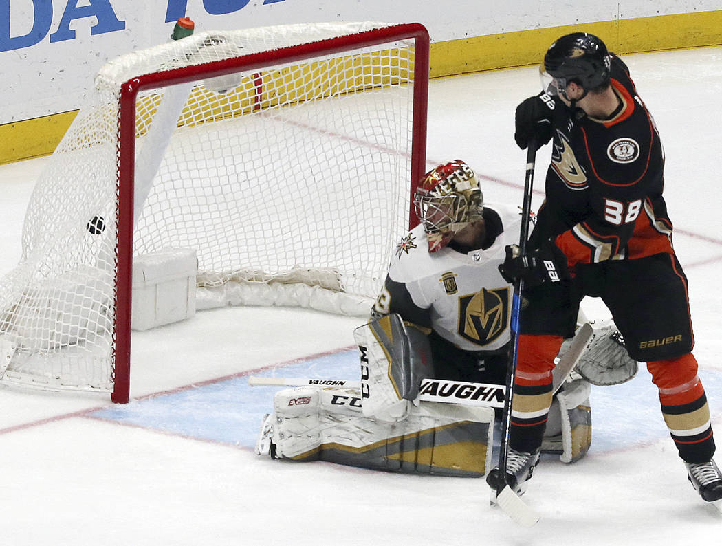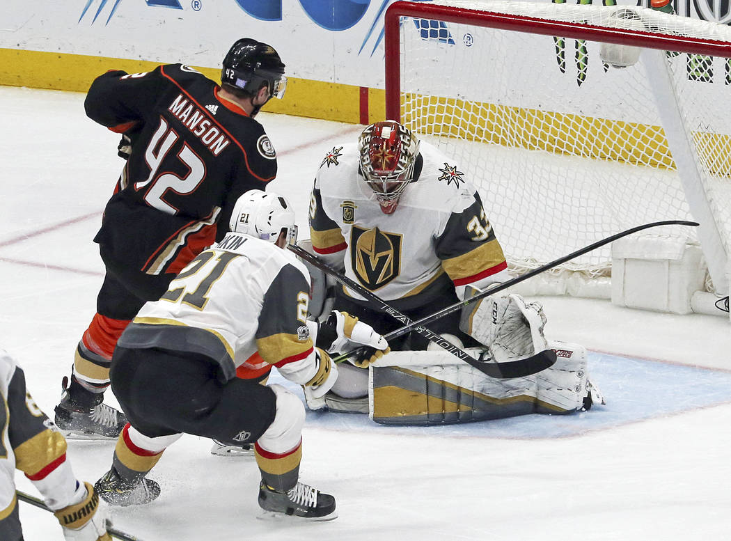 Josh Manson stick-handled through the Knights’ defense and beat Maxime Lagace midway through the first period, and Derek Grant’s redirect of Hampus Lindholm’s wrist shot on the power play made the score 2-0 5:59 into the second period.