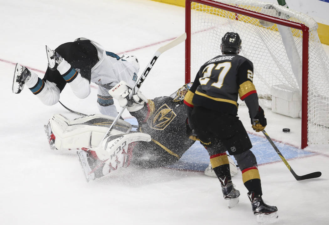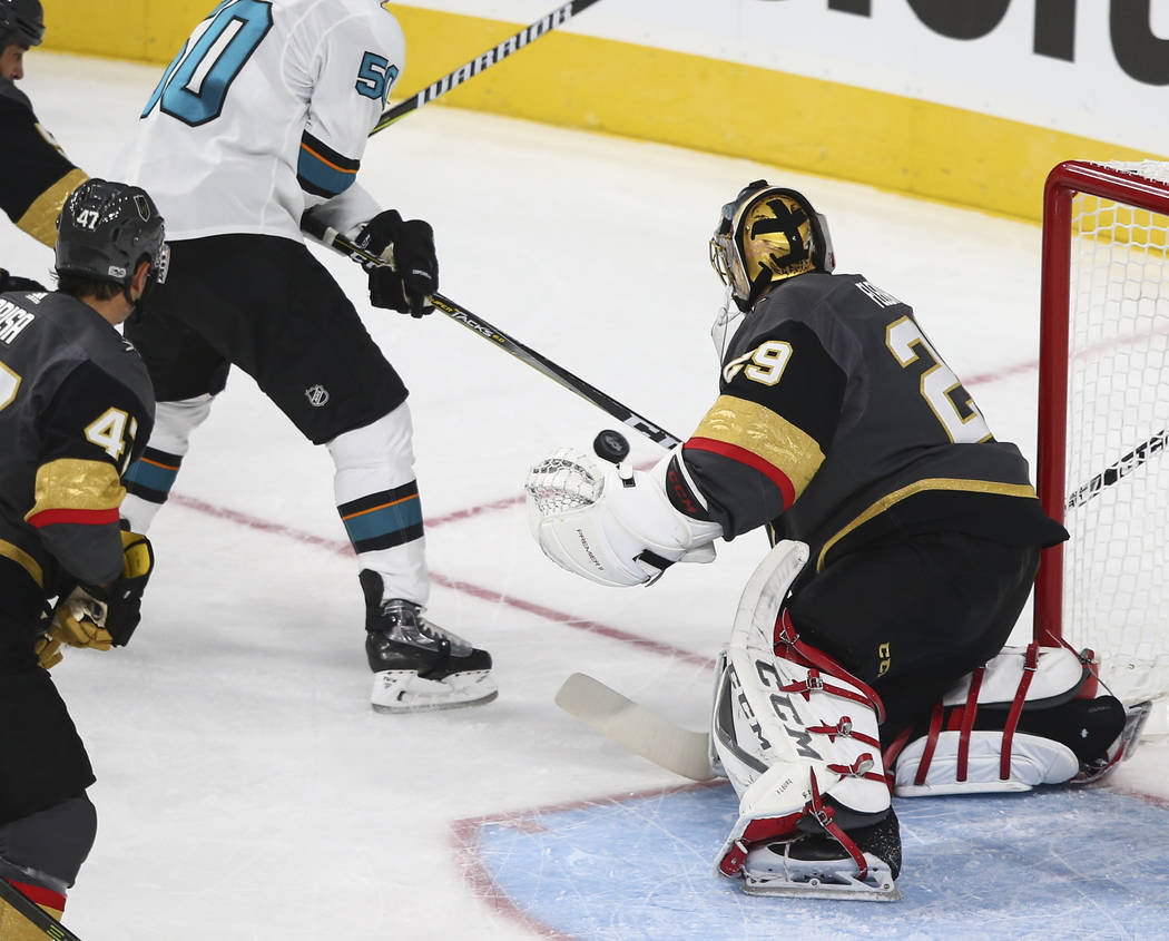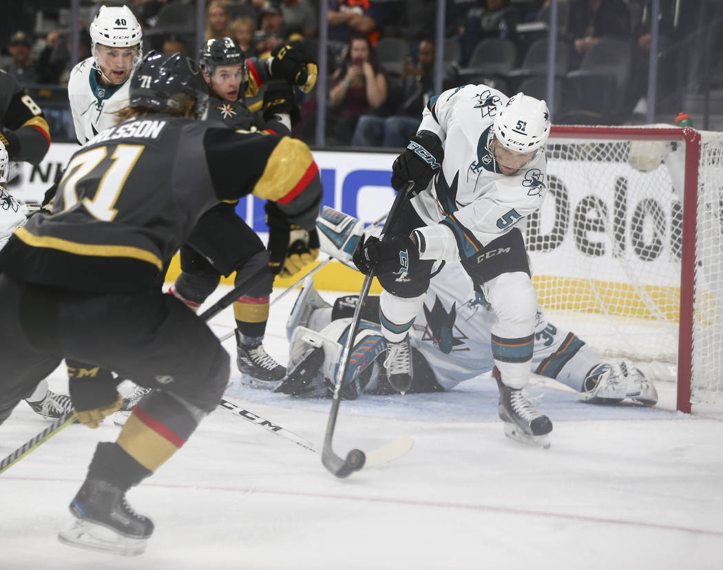 But Fleury was unable to secure a loose puck after Nick DeSimone’s shot from close in snuck under his pads and across the goal line with 9:09 to play for what was the game-winner as the Sharks wrapped up their preseason 3-3.