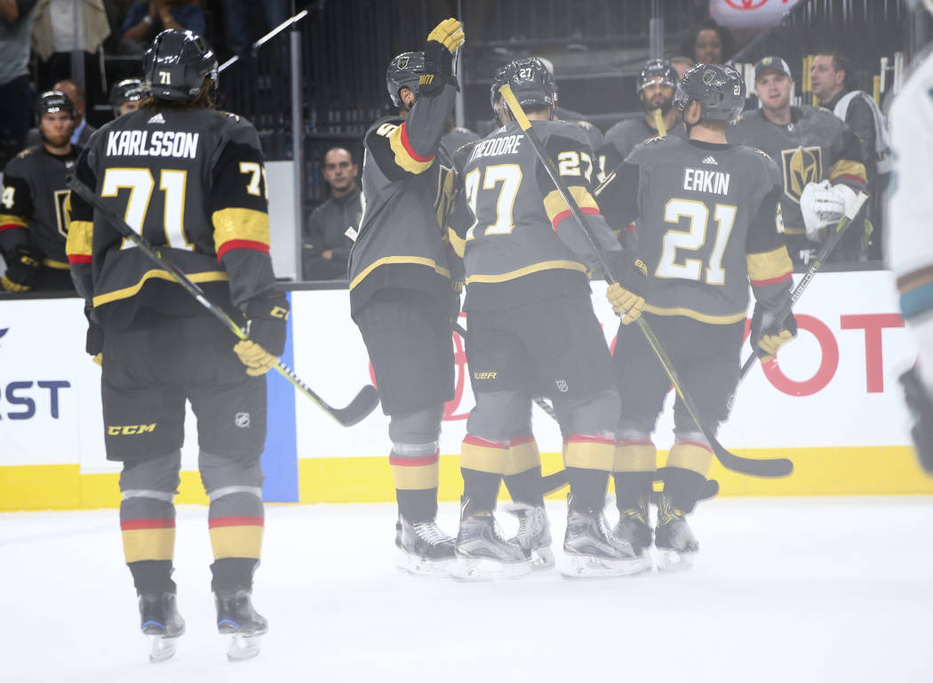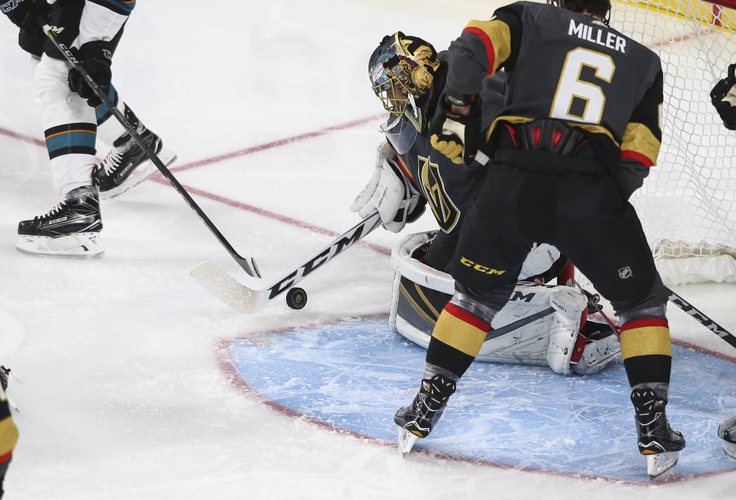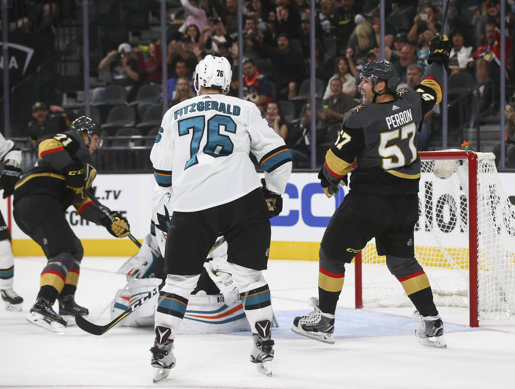 San Jose scored three unanswered goals to take a 3-1 second-period lead before the Knights were able to rally as David Perron and Colin Miller scored 4:08 apart to tie the game going into the third period.