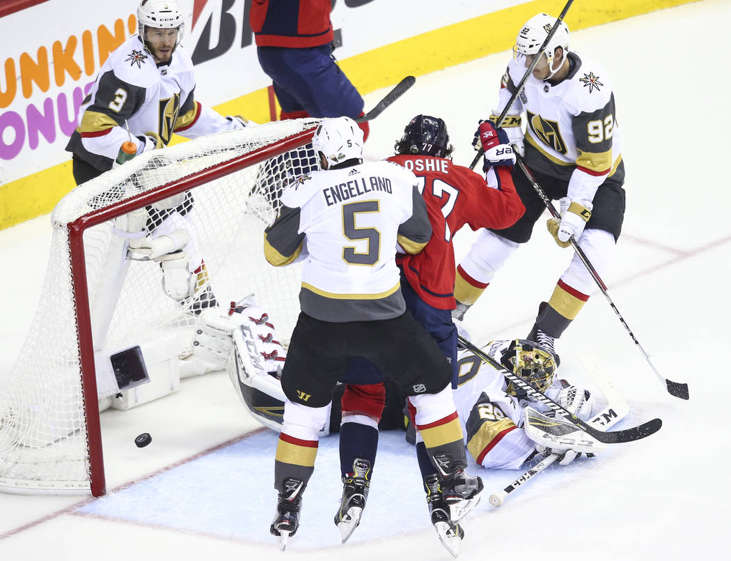 “You can’t get frustrated because you didn’t score those two goals,” Knights forward Pierre-Edouard Bellemare said. “At the end of the day, first period, they created less bounces than us, but they scored more than us.”