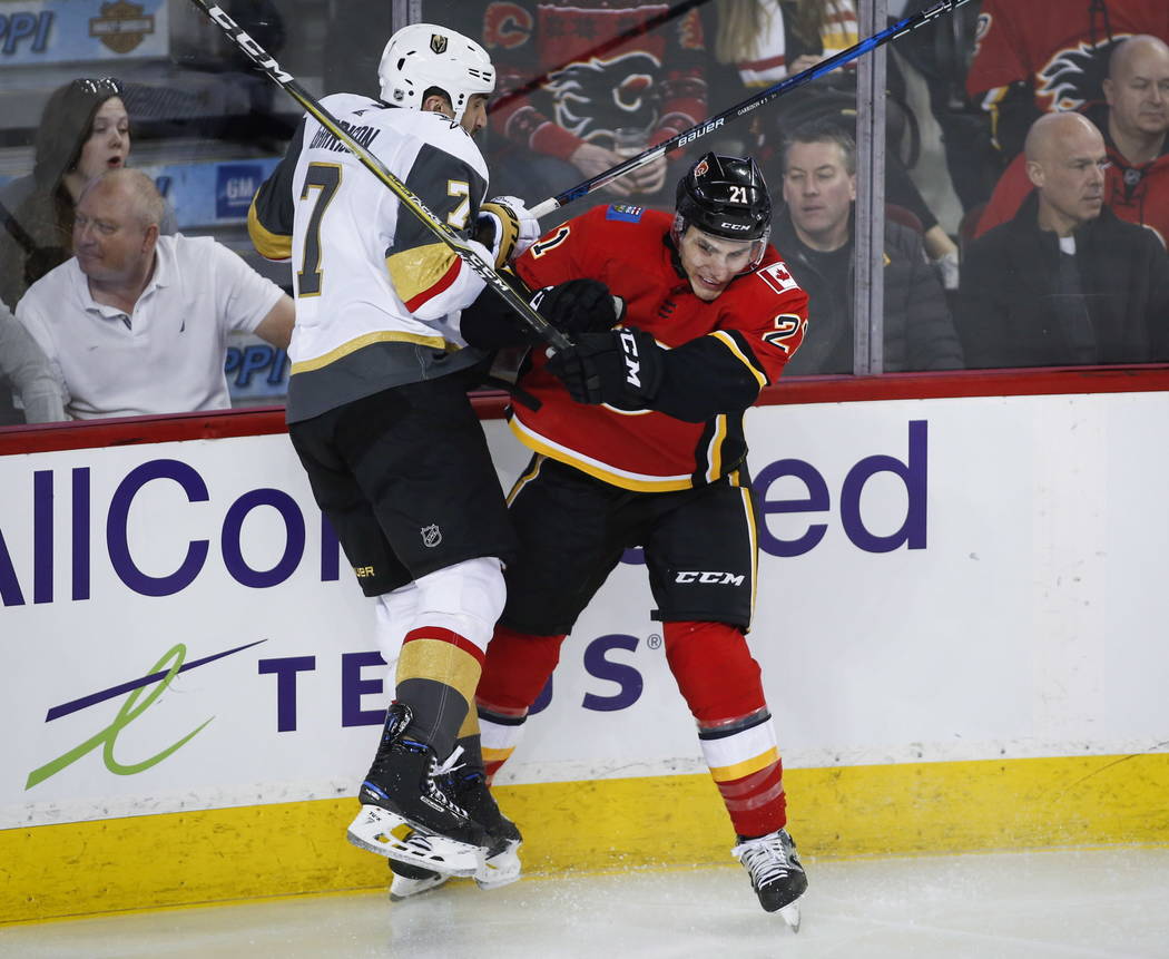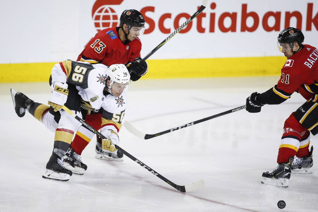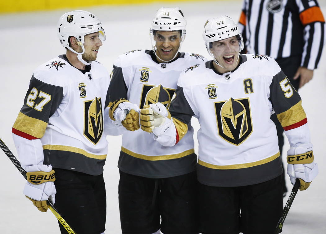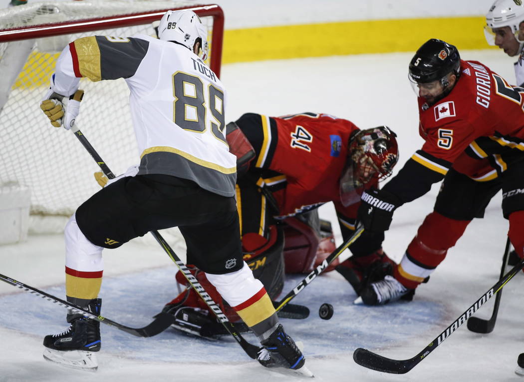 The Knights, who are 22-1 when scoring first, took a 1-0 first-period lead on Reilly Smith’s power-play goal as he deflected Marchessault’s wrist shot from inside the Calgary blue line. It was Smith’s 13th goal.