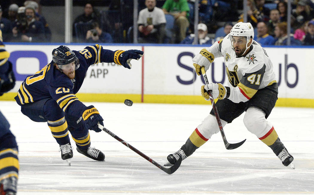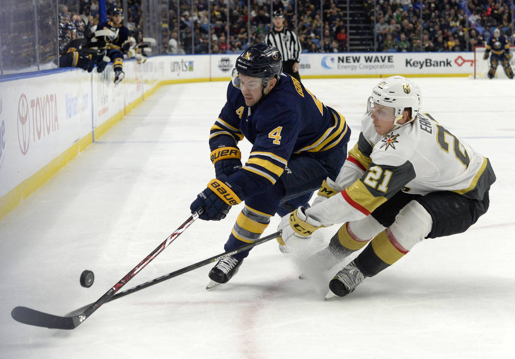 On Saturday, they were low on energy and trailing one of the NHL’s worst teams late in the game. But Deryk Engelland scored a fluke goal to tie the game, and Erik Haula notched the winning goal in the fifth round of a shootout to give the Knights a 2-1 victory over the Buffalo Sabres at KeyBank Center.