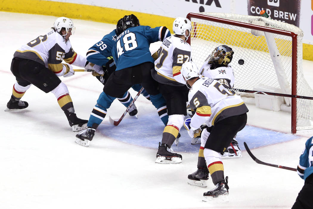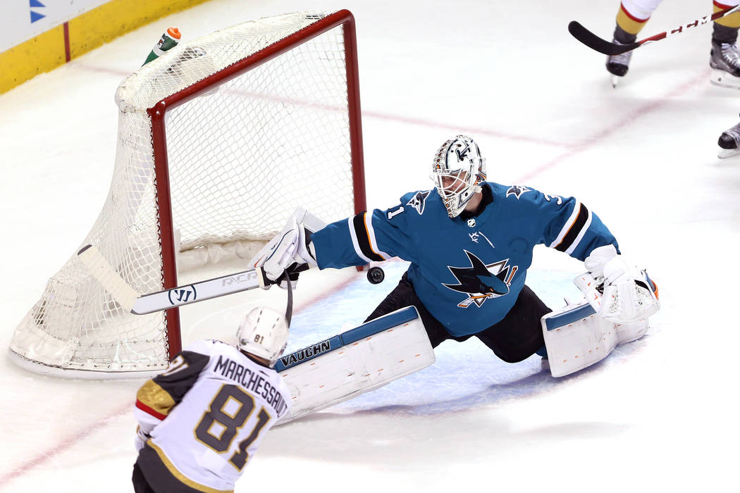 Marchessault almost brought the Knights within two goals with 5:30 left in the second when his shot trickled past Jones but was cleared out of the crease by San Jose defenseman Brent Burns.