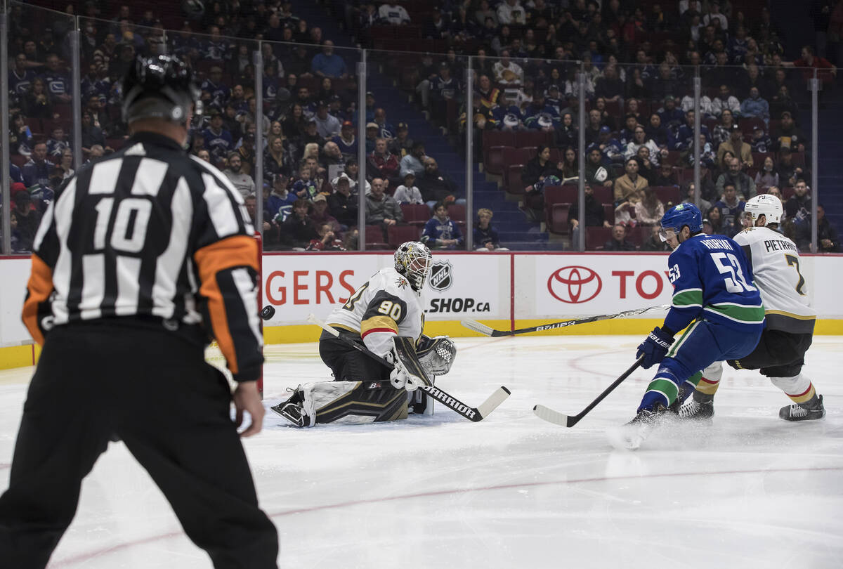 This was the first of three meetings in 10 days between the teams, and the Knights improved to 10-0-2 all time against Vancouver. They complete the home-and-home series Wednesday at T-Mobile Arena.