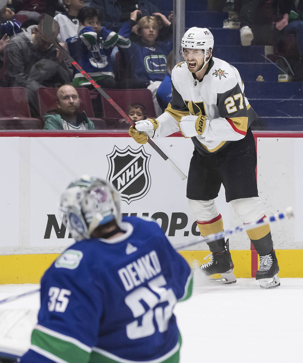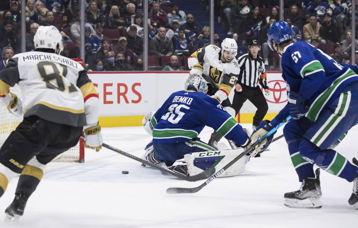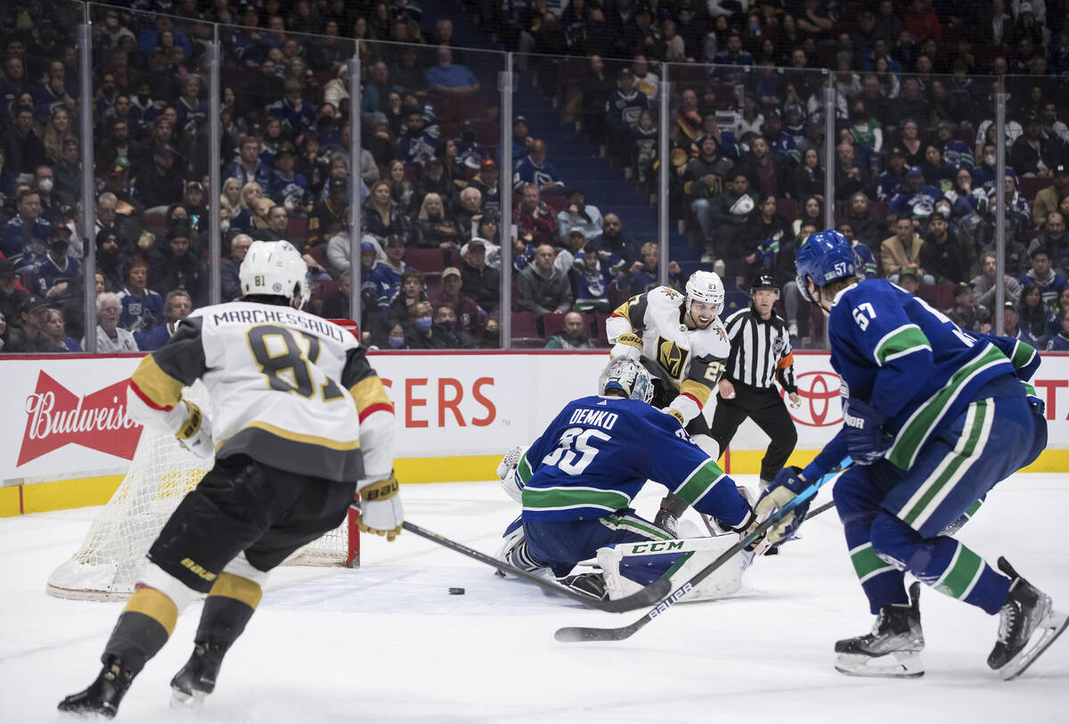 The past two goals scored by Marchessault were into an empty net, but he beat Canucks goalie Thatcher Demko with a wrist shot from the slot for a 2-0 advantage in the first period.