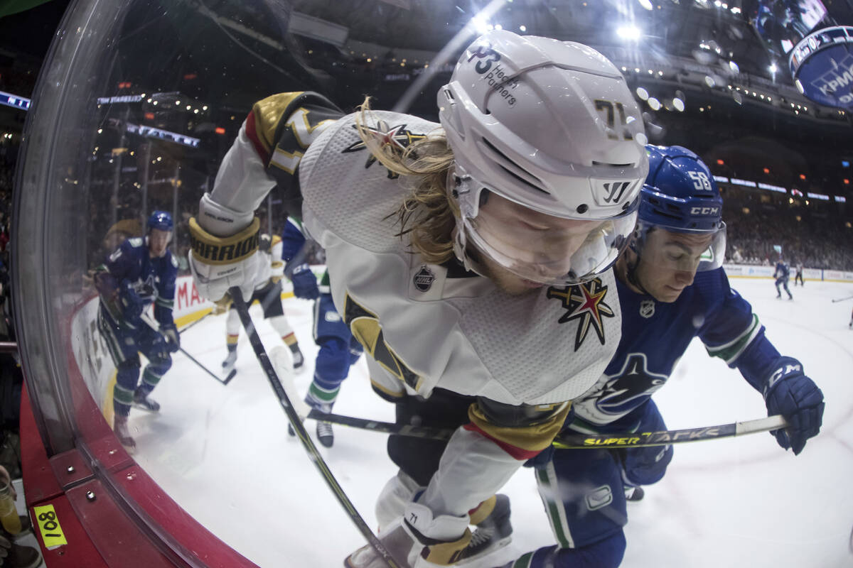 Knights center William Karlsson won the defensive-zone faceoff against Horvat, and defenseman Alec Martinez tried to control the puck but accidentally deflected it past Lehner into his own net.