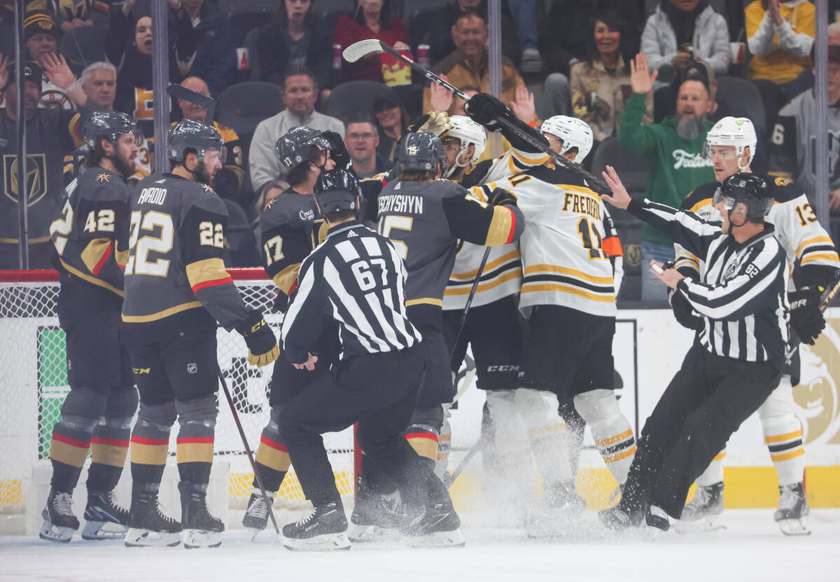 Their power play scored against the NHL’s No. 1 penalty kill despite Eichel and Theodore being removed from the top unit. The Knights finished 1-for-4 with seven shots. They also didn’t give up a goal on the man advantage to Boston’s third-ranked unit despite taking two minor penalties.