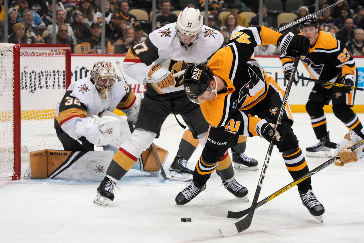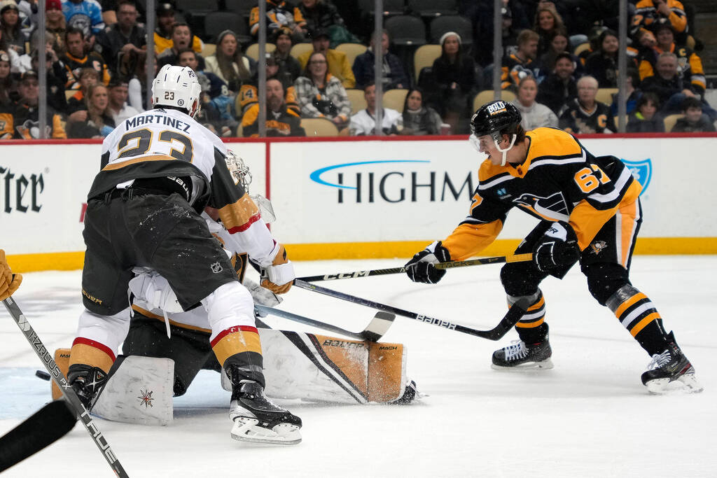 First-period goals from center Jack Eichel and Smith put the Knights ahead 2-0. But Pittsburgh’s energy was always there. The Penguins (12-8-4) had 18 shots on goal in the first.
