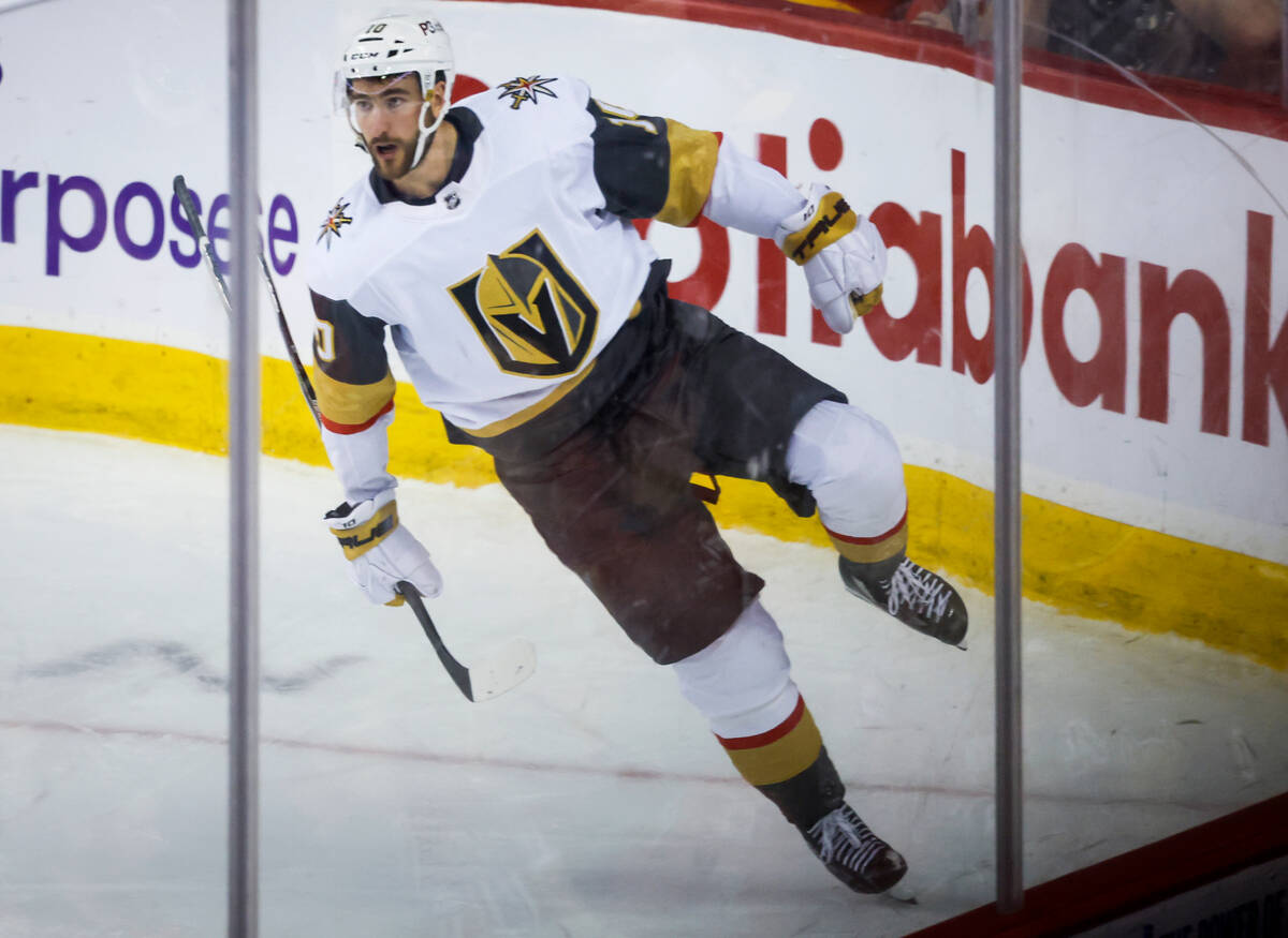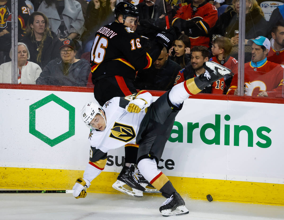 Logan Thompson made a save, stayed down on one knee briefly, then skated slowly to the Golden Knights’ bench at Scotiabank Saddledome.
