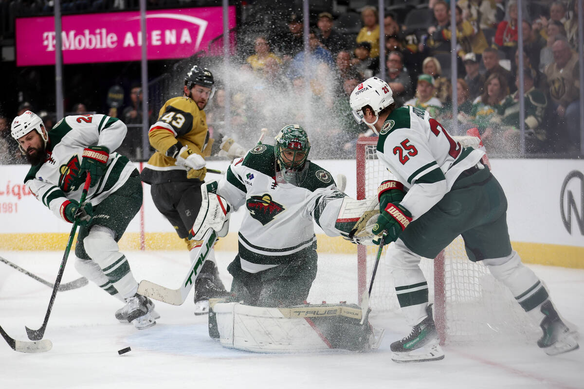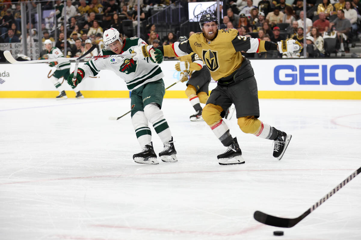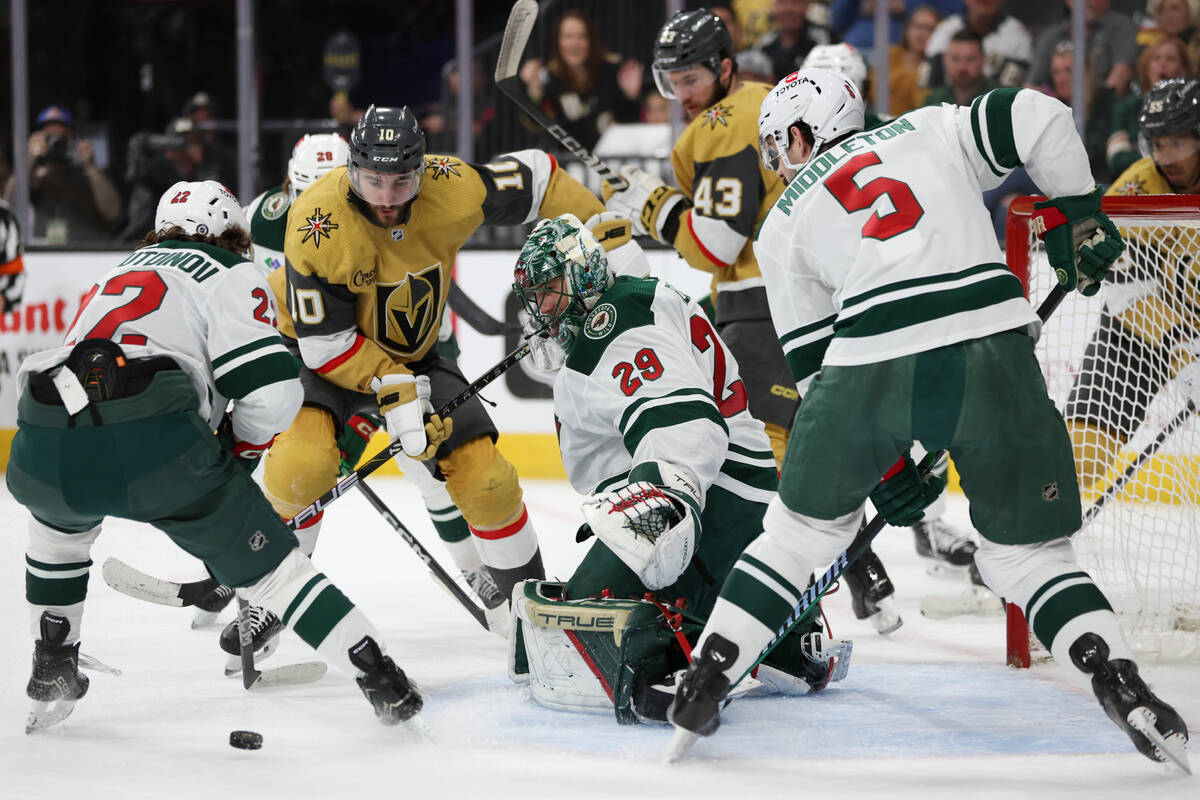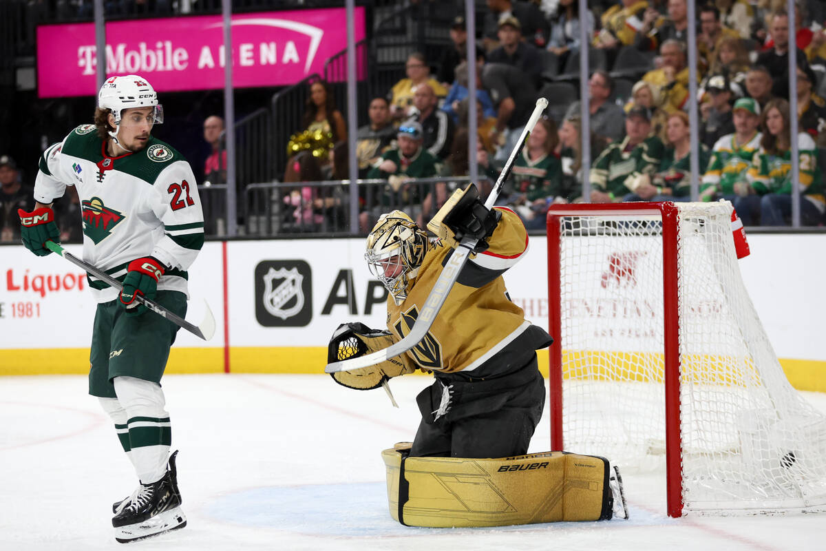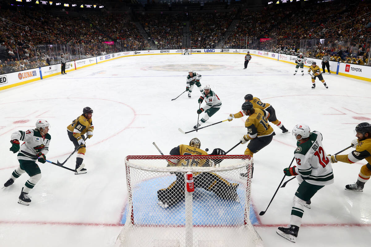 The Knights (43-28-8) scored three times in the first 8:35, capped off with a power-play goal from center Jack Eichel for a 3-0 lead and an advantage they wouldn’t relinquish against the Wild (37-32-10).