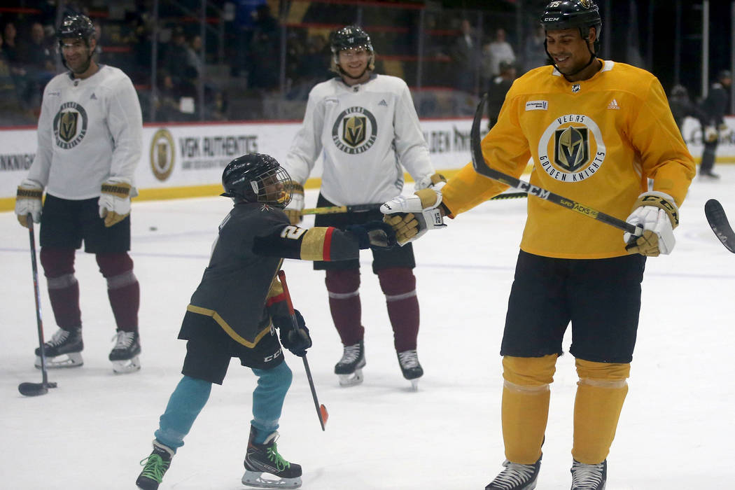 The affable Golden Knights forward goes out of his way to high-five or hug youngsters, pose for pictures or play games in exchange for a puck.