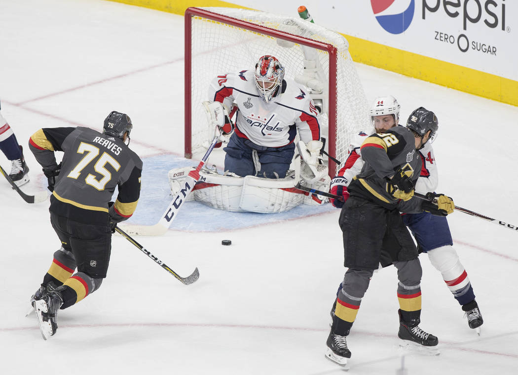 Ryan Reaves notched his second goal of the postseason early in the third period as the Knights’ fourth line produced all three goals in the third period to overturn a 4-3 deficit.