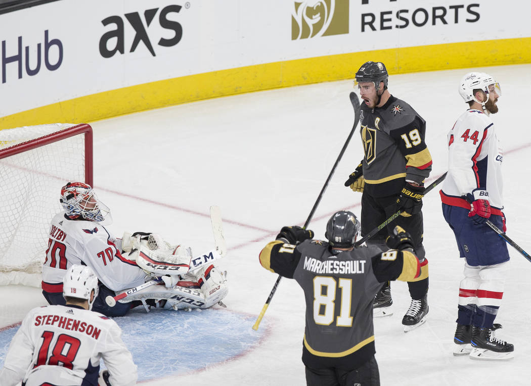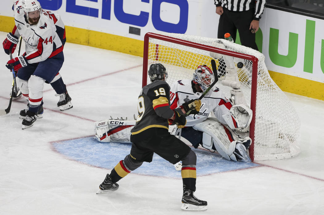 The Capitals then took the lead with 4:37 remaining in the period when nobody for the Knights picked up Nicklas Backstrom, who beat Fleury with a backhand from in tight after T.J. Oshie lost control of the puck on a wraparound attempt.