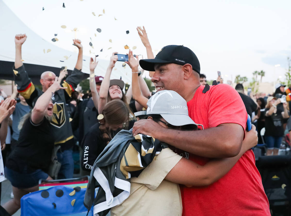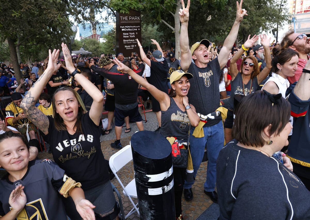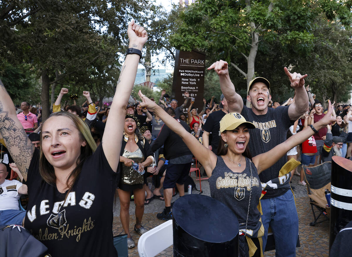 When it was over, in a lopsided 9-3 victory over the Florida Panthers, the thousands of people gathered in Toshiba Plaza outside T-Mobile Arena erupted in an epic Vegas-style celebration that also brought out some emotions — given the team’s association with the Oct. 1, 2017, mass shooting.