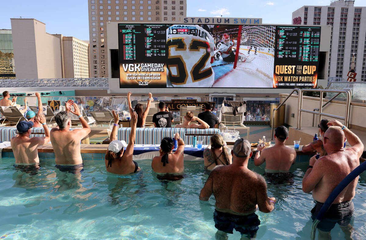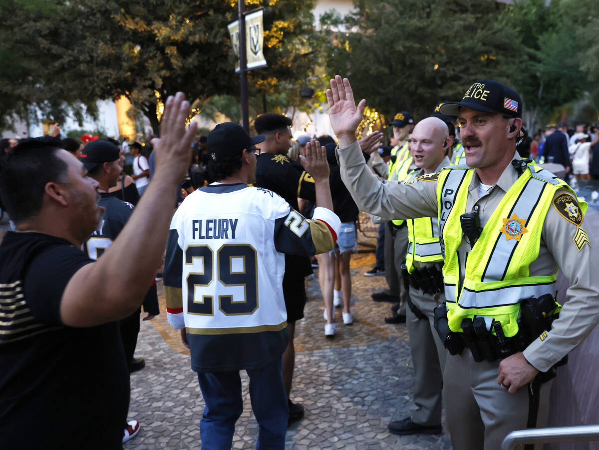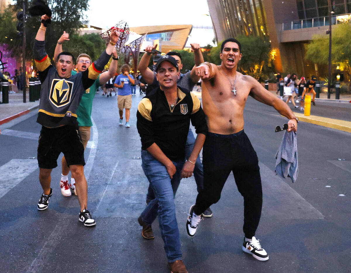 When it was over, in a lopsided 9-3 victory over the Florida Panthers, the thousands of people gathered in Toshiba Plaza outside T-Mobile Arena erupted in an epic Vegas-style celebration that also brought out some emotions — given the team’s association with the Oct. 1, 2017, mass shooting.