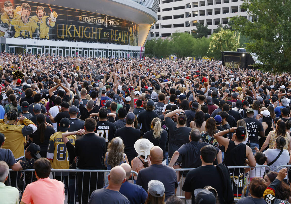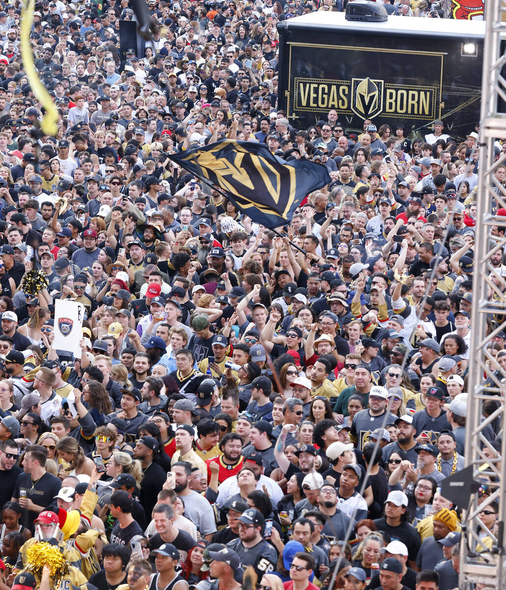 A group of fans waved a giant Golden Knights flag as car horns blared in support. There were no reports of riots, fires or cars being tipped.