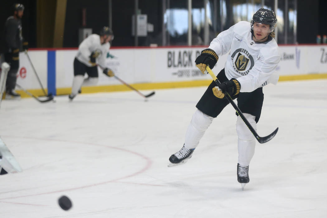 Injured forward William Karlsson participated in the Knights’ morning skate Saturday, his first time skating with the team in almost a month. He did not play against the Hurricanes.