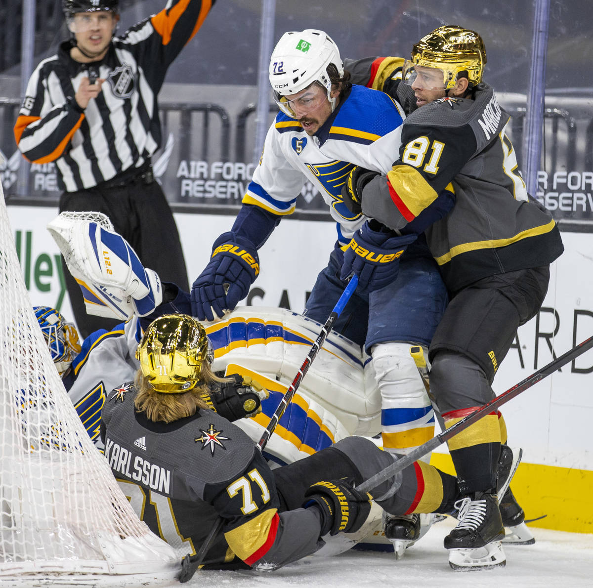Blues center Ryan O’Reilly scored a short-handed goal in the first period, the second one the Knights have allowed this season.