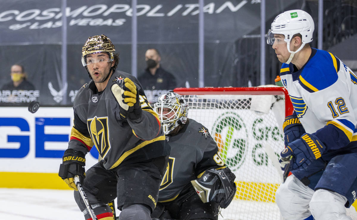 DeBoer said the switch was made because he wanted to see how Krebs, who is a left-shot but can play all three forward positions, looked on the wing before the playoffs. He contributed to a goal when he screened goaltender Jordan Binnington on defenseman Alec Martinez’s point shot late in the second period.