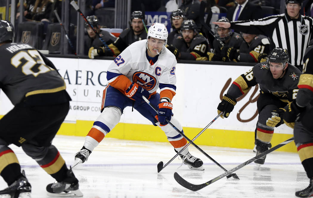 Midway through the period, Knights defenseman Nick Holden wiped out Barzal behind the net, and New York captain Anders Lee stepped in to fight Holden.