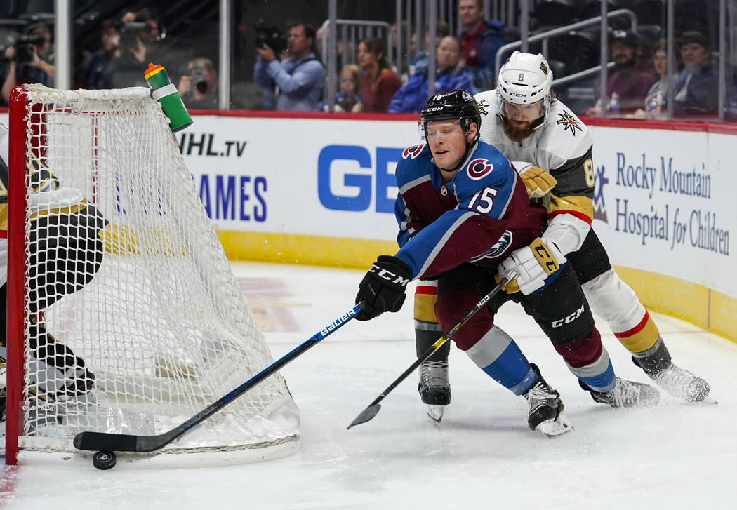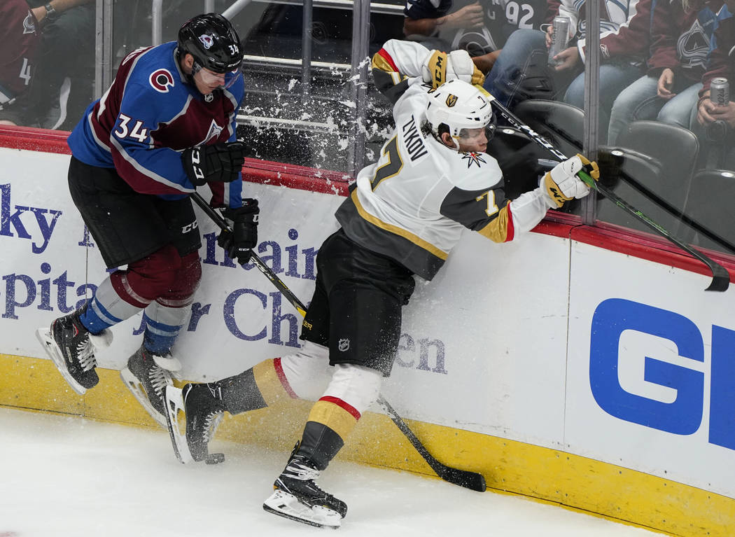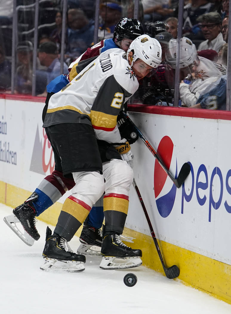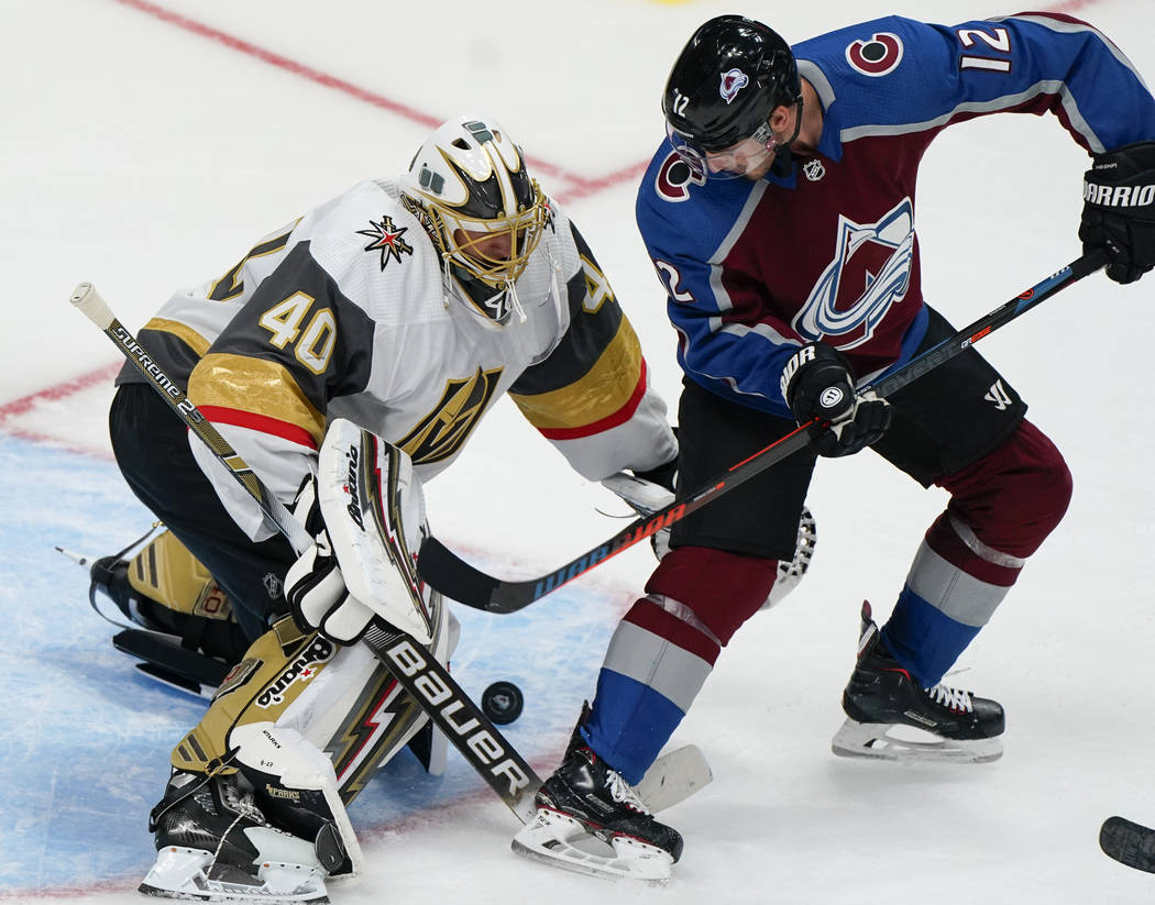 DENVER — None of the Golden Knights’ regular top-six forwards were in the lineup Tuesday, and Avalanche center Pierre-Edouard Bellemare didn’t face his former team.