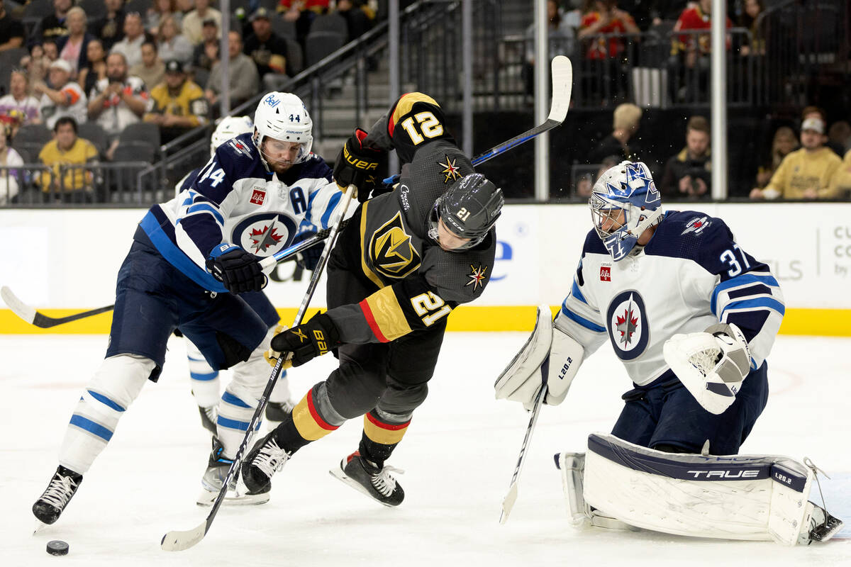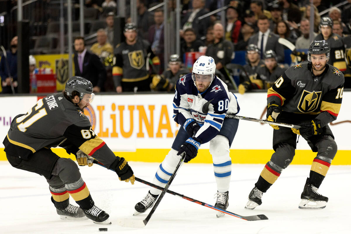 Stone tied the game by swatting his own rebound out of midair and under Hellebuyck’s glove seven minutes after Jets center Adam Lowry’s goal. The Knights kept pushing from there. They just couldn’t find a way to break through.
