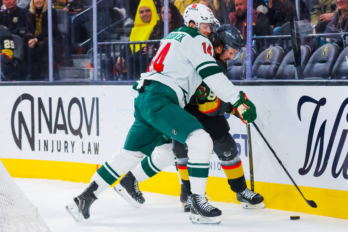 Kolesar stood out in other ways as well. He fought Wild left wing Marcus Foligno for the second time in a month. The two scrapped Dec. 15 in Minnesota after Foligno hit left wing Ivan Barbashev, who missed the Knights’ next 10 games with an upper-body injury.
