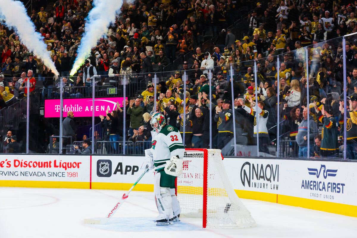 Former Knights goaltender Marc-Andre Fleury was the Wild’s backup Sunday in what could be his final appearance at T-Mobile Arena.