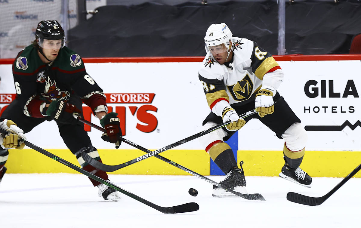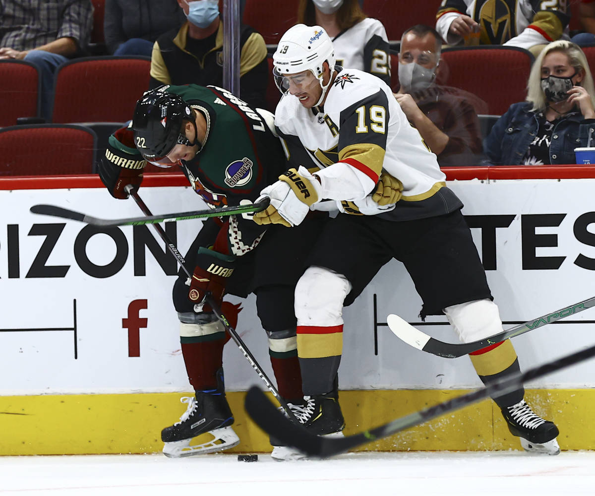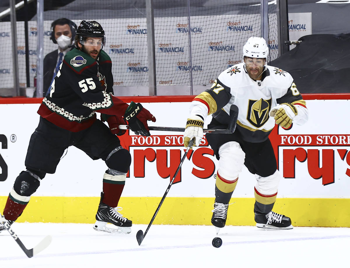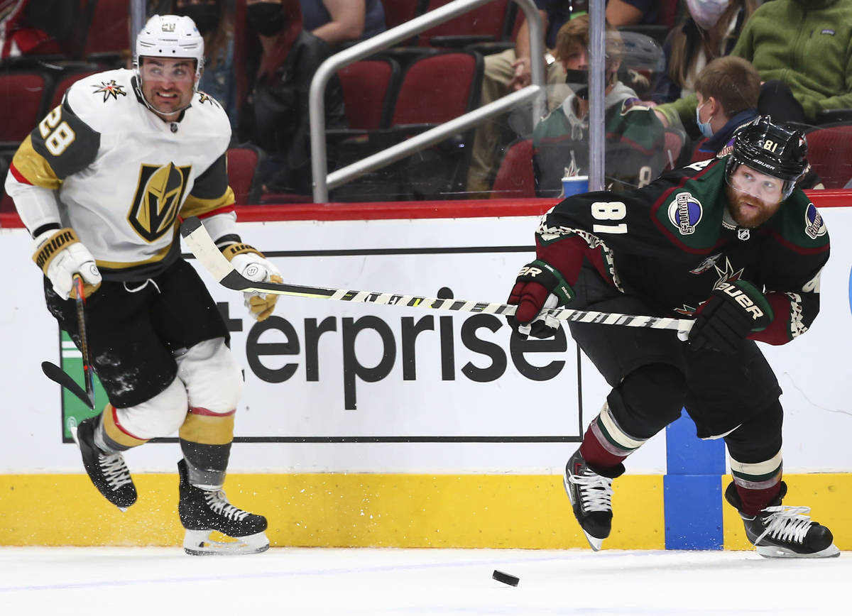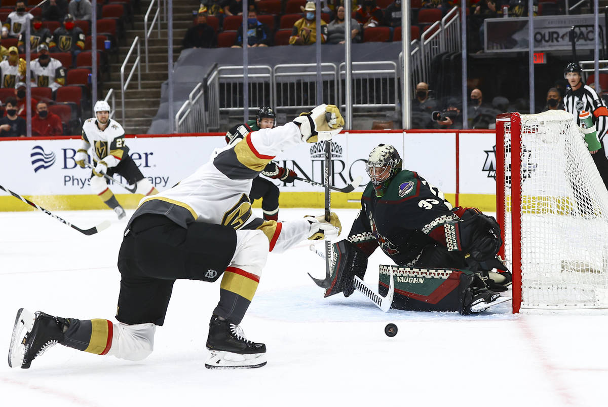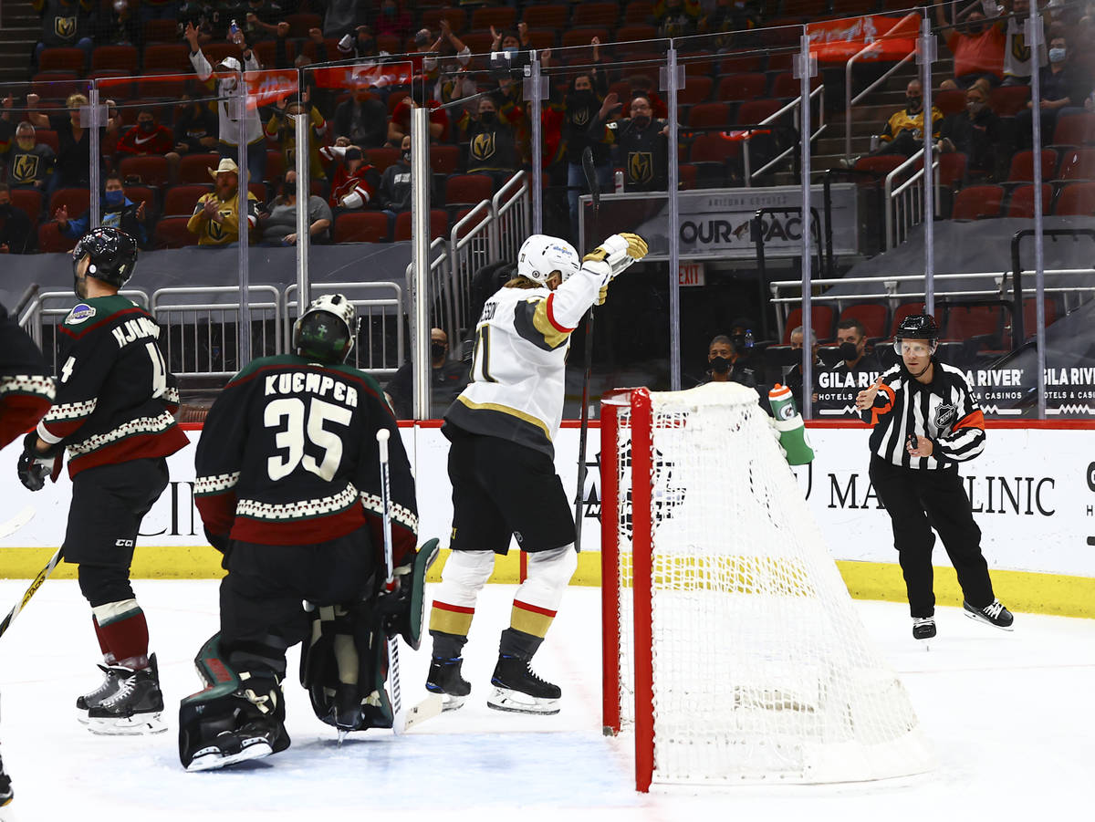 The Knights were coasting in the third period before Arizona’s Christian Fischer pounced on a loose puck in the slot and scored midway through the third period to cut the Knights’ lead to 2-1.