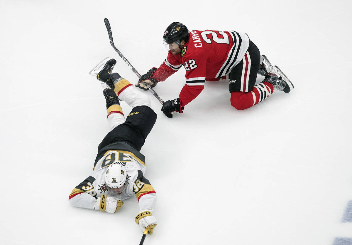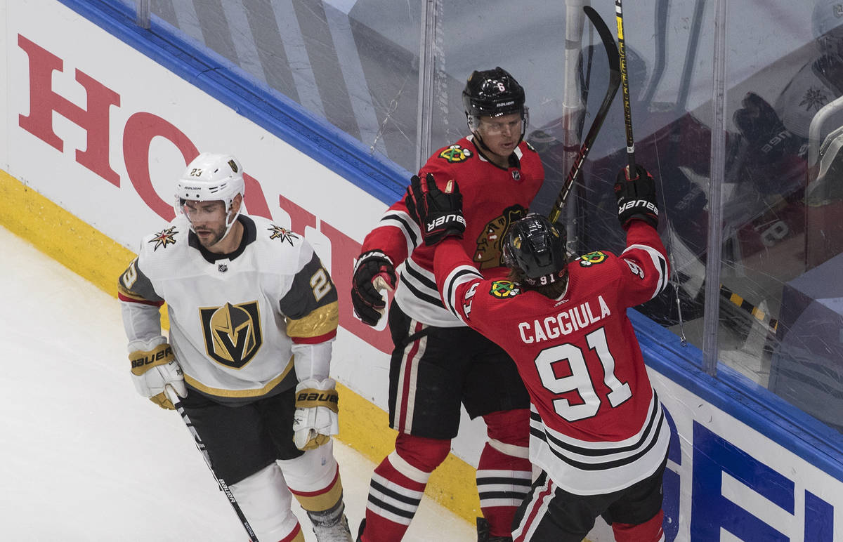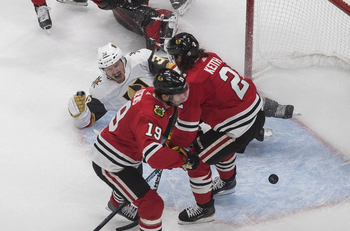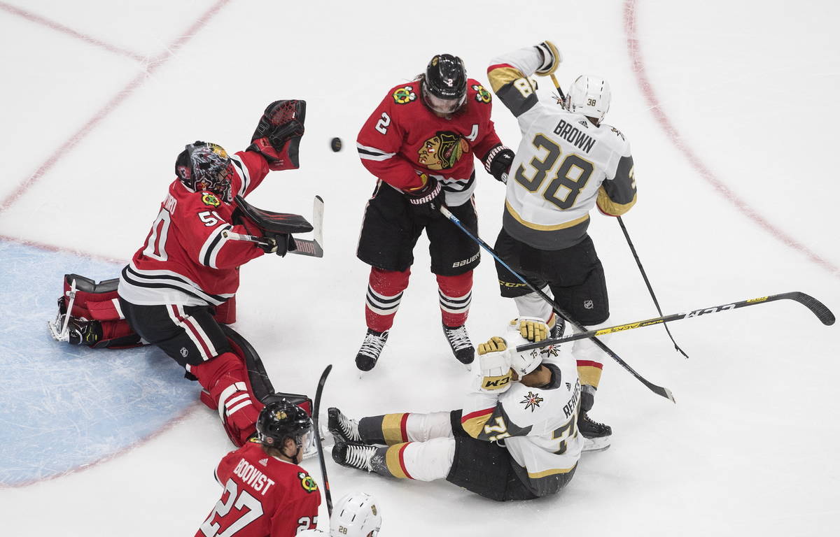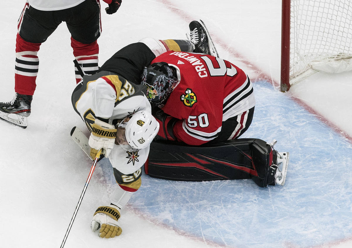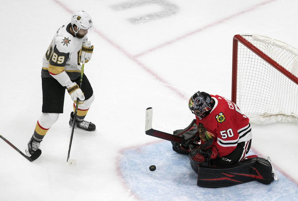 Fleury turned away several scoring chances from Chicago’s Alex DeBrincat and stretched to make a pad save against Patrick Kane on the doorstep to keep the Knights ahead 2-1 midway through the third period.