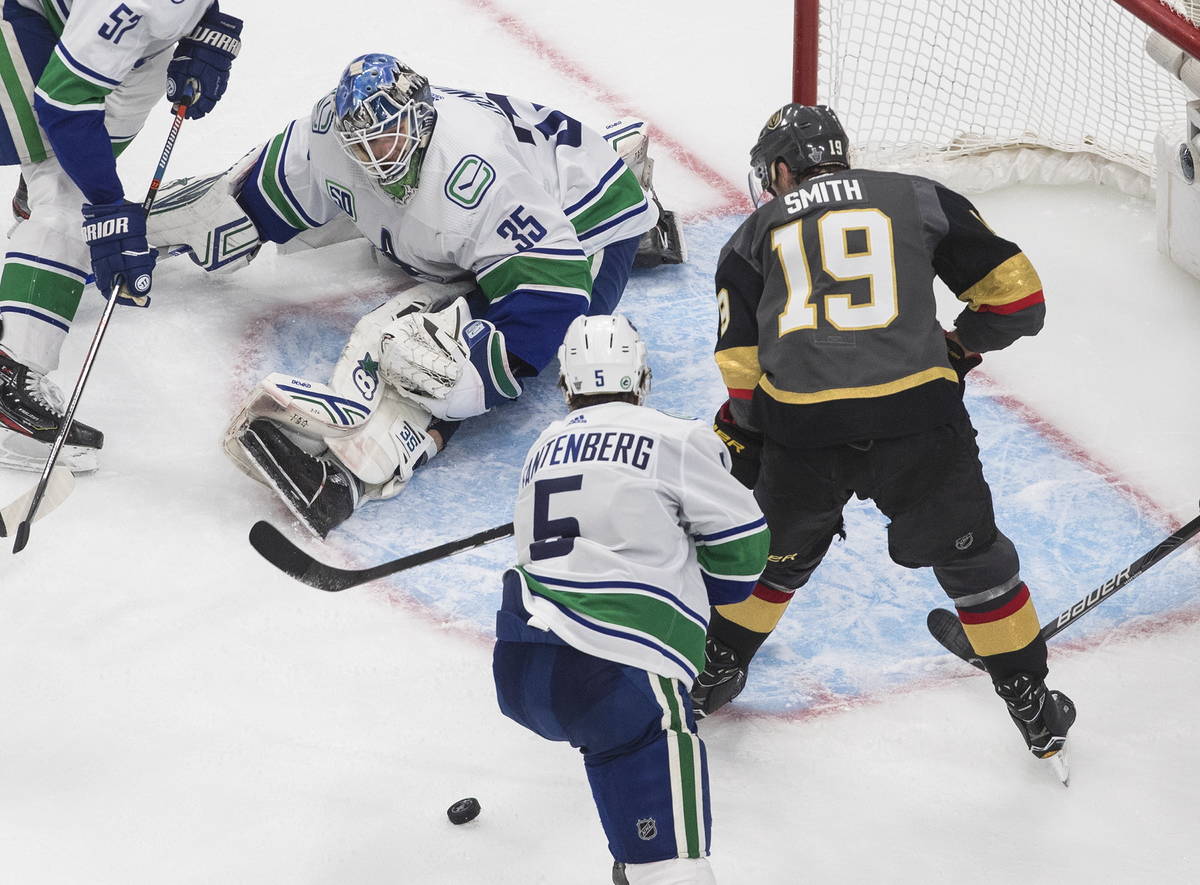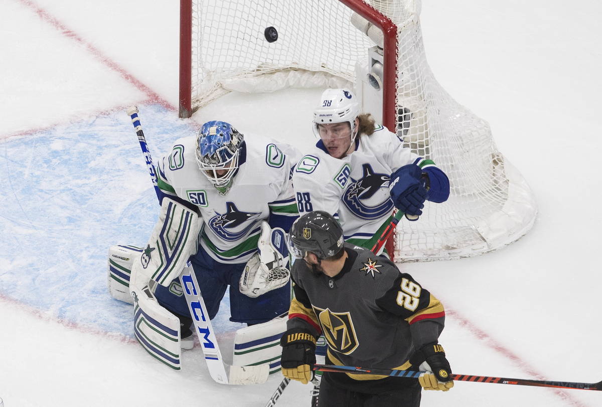 Demko saw Shea Theodore’s shot from the point navigate through traffic and find the net with 6:08 to play in the third period and the Golden Knights added two empty-net goals as Vancouver fell 3-0 in Game 7 on Friday night in Edmonton, Alberta.