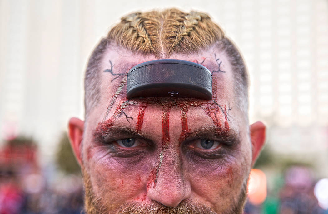 It was the Knights first home game on Halloween, and fans showed up with some eye-popping creations, including clowns and Elvis (young and old). A few even had a puck “embedded” into their forehead.