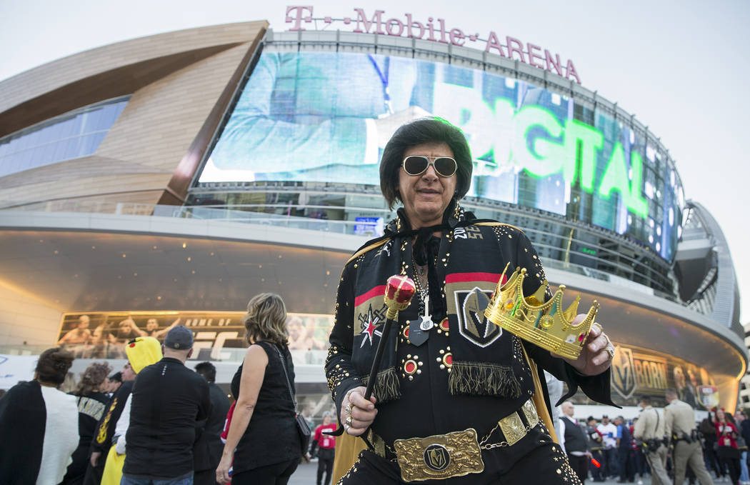Doug Bowden in his Halloween outfit outside T-Mobile Arena before the start of the Golden Knights NHL hockey game with the Montreal Canadiens on Thursday, Oct. 31, 2019, in Las Vegas. (Benjamin Hager/Las Vegas Review-Journal) @benjaminhphoto