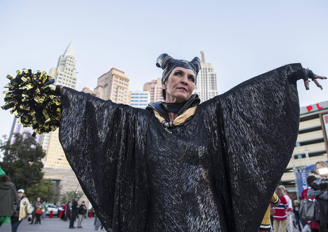 Cheryl Jennings in her Halloween outfit outside T-Mobile Arena before the start of the Golden Knights NHL hockey game with the Montreal Canadiens on Thursday, Oct. 31, 2019, in Las Vegas. (Benjamin Hager/Las Vegas Review-Journal) @benjaminhphoto