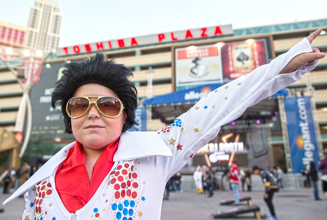 Max Jacobson, 9, in his Halloween outfit outside T-Mobile Arena before the start of the Golden Knights NHL hockey game with the Montreal Canadiens on Thursday, Oct. 31, 2019, in Las Vegas. (Benjamin Hager/Las Vegas Review-Journal) @benjaminhphoto
