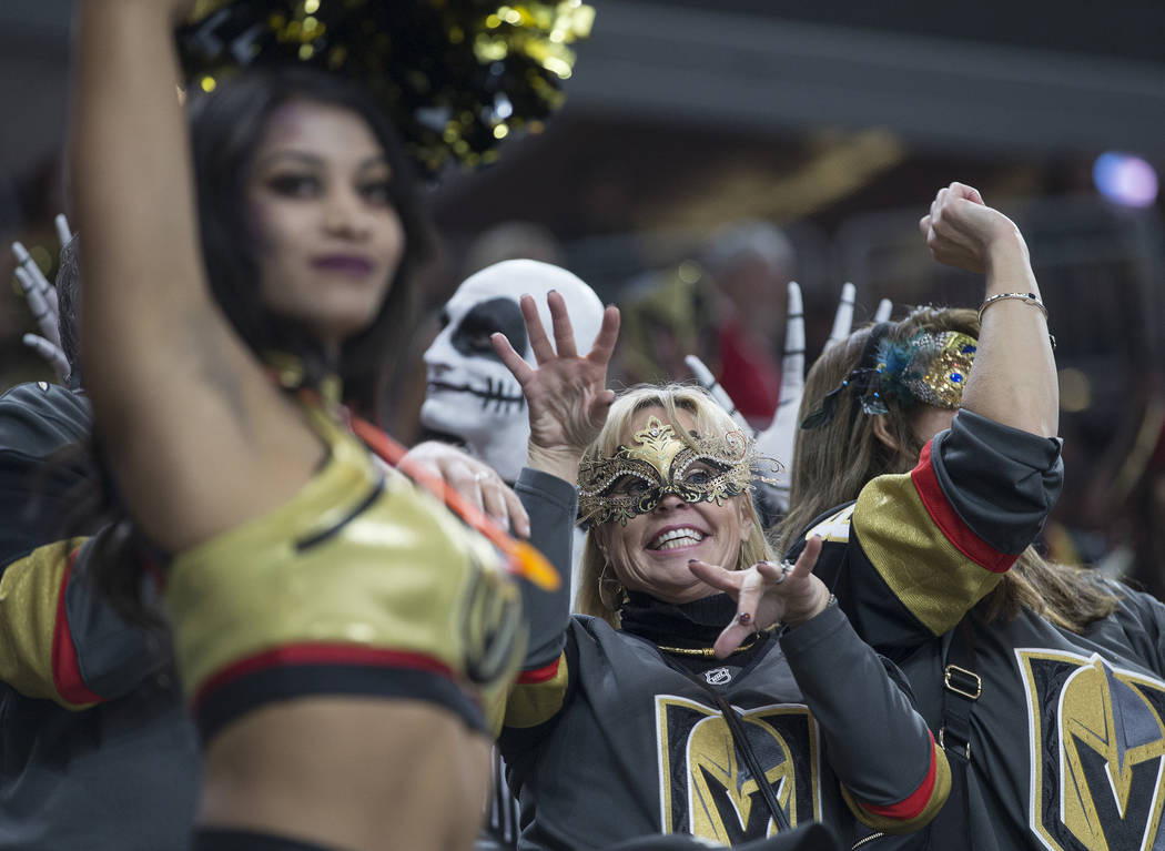 Golden Knights fans embraced Halloween with some creative and colorful costumes during Thursday night’s game at T-Mobile Arena.