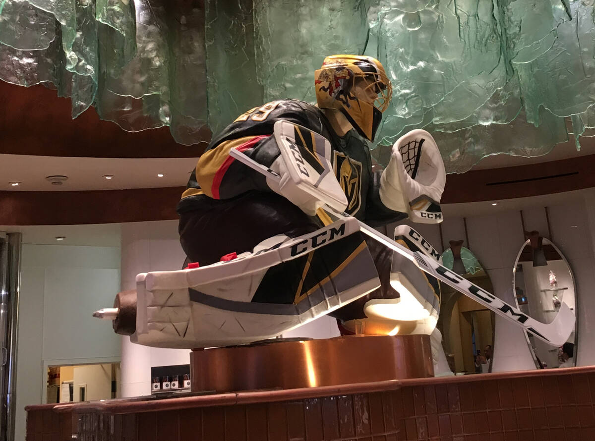 Bellagio Patisserie debuted a chocolate sculpture of goalie Marc-Andre Fleury on Monday, just in time for the playoffs. (Janna Karel Las Vegas Review-Journal)