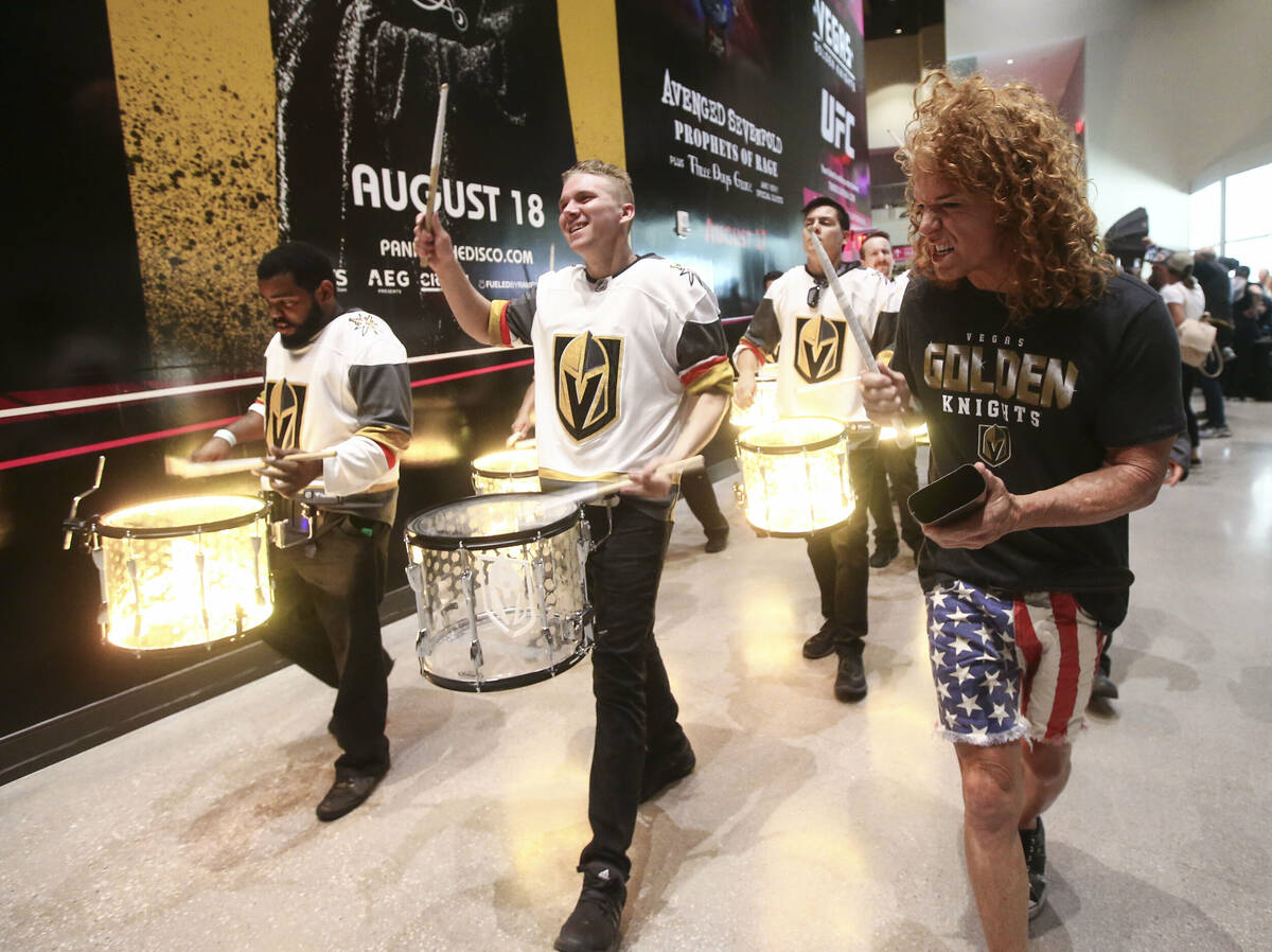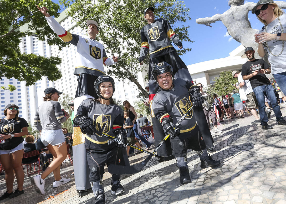 Vegas Golden Knights performers pose for photos before Game 1 of the NHL hockey Stanley Cup Final between the Vegas Golden Knights and the Washington Capitals outside T-Mobile Arena in Las Vegas on Monday, May 28, 2018. Richard Brian Las Vegas Review-Journal @vegasphotograph